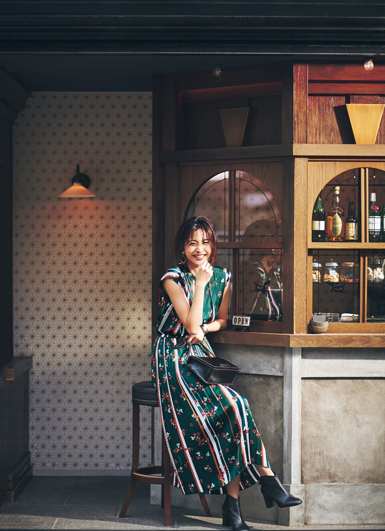 9月10日(火)、一見ワンピに見えて、実はセットアップというコーディネートが今っぽいんです。華やかな柄の雰囲気をを引き締めるなら、黒のレザー小物を合わせるのが間違いなし!今日も1日頑張りましょう。