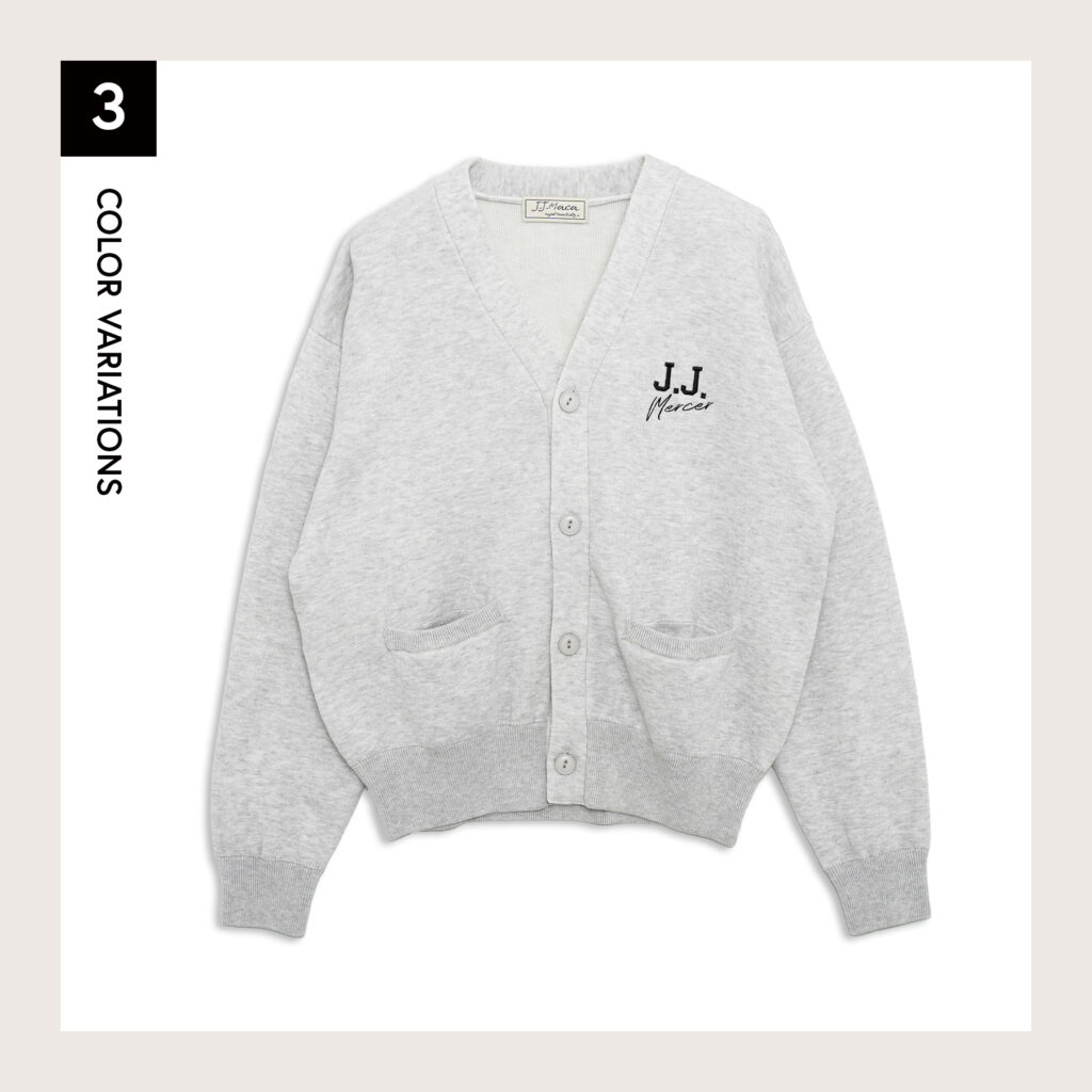 身幅が広く、ジャケット感覚で使えるカーディガンは、オンオフともに活躍する一枚。甘さのあるアイテムを程よくカッコよくしてくれます。デニム素材のシャツと合わせれば、いつものシャツ×カーディガンもラフな抜け感のある旬顔に。胸元のロゴは、単調になりがちな無地もアイテムを盛り上げ。