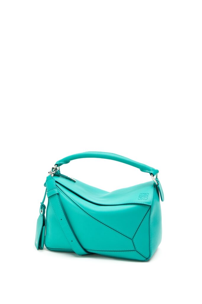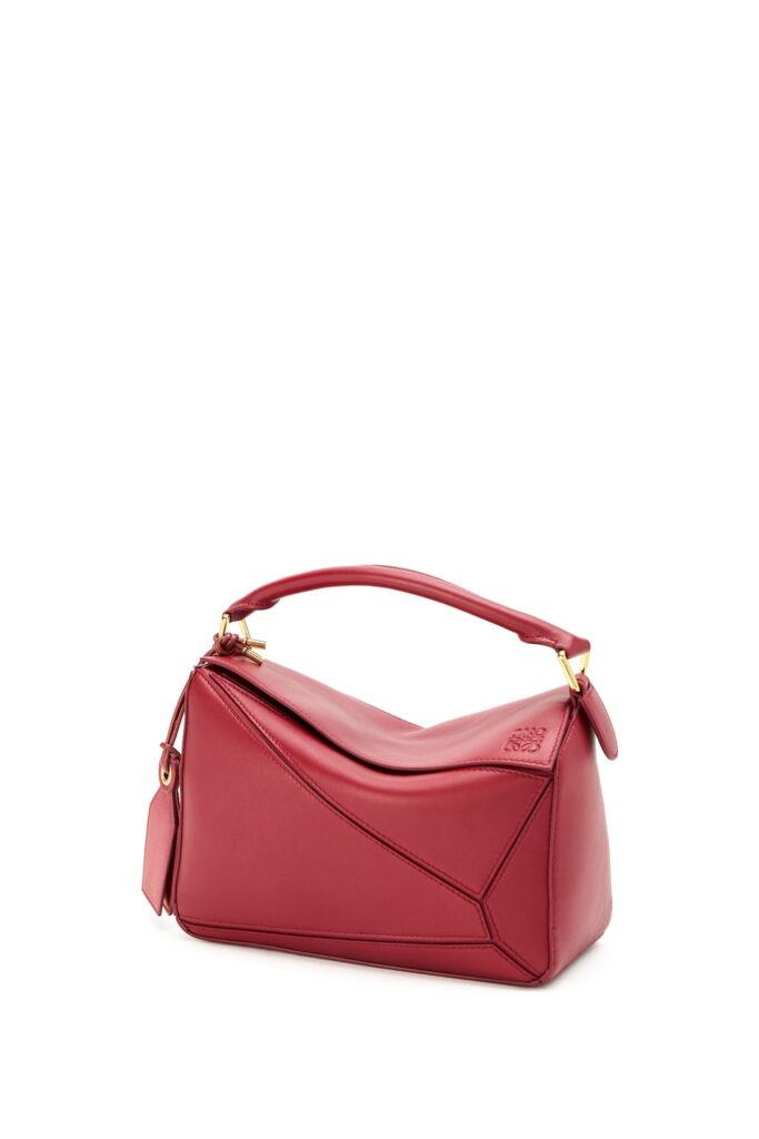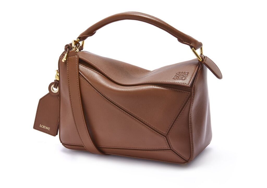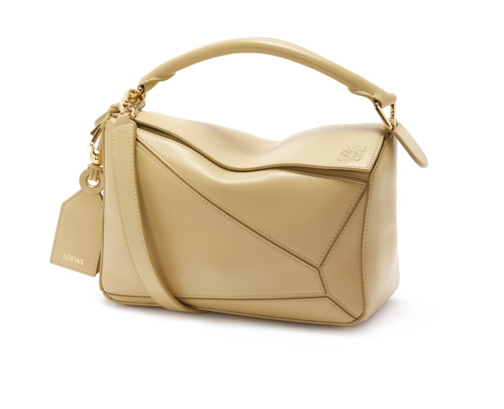 新作には、スリムになったメタルパーツ、シークレットポケット付きのラゲッジタグ、着脱可能なバルーンダイス、バッグを保護する洗練された底鋲が付いています。内装では、ナパラムスキンを裏地に採用し、「LOEWE」の文字が刻印されたゴールドのプラークが光ります。