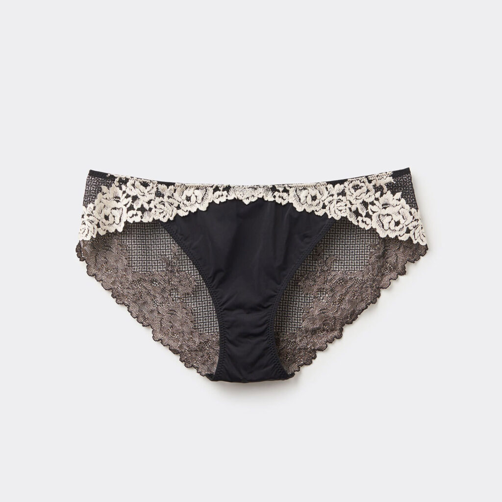 素材の美しさを引き立てる黒と白のコントラストが華やかなランジェリーは、Intimissimiの人気シリーズ“Pretty Flowers”のブラ&ショーツ。日常に溶け込む控えめな華やかさが、等身大の自分へと導いてくれる!