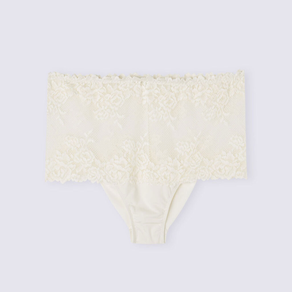 ピュアなホワイトのランジェリーは、大人ならではの品のあるレースがセレクトのポイント。素肌をやさしく包み込むシルクが、リラックスしたいおうち時間に寄り添ってくれる。