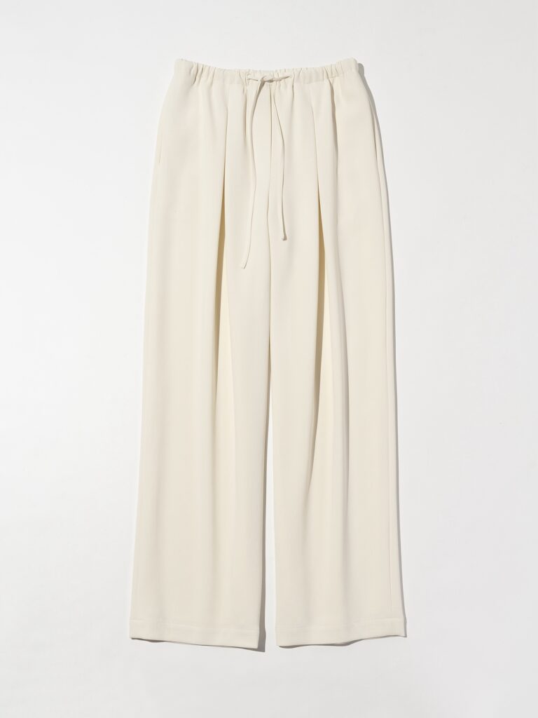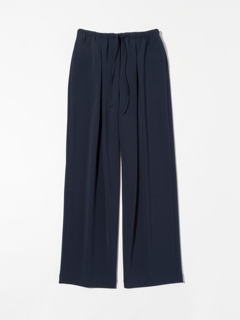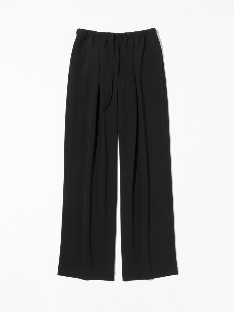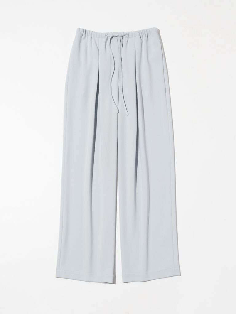 落ち感が美しい、クレープ素材のプルオンパンツ。空気を含んだようなエアリーな膨らみで、流れるような足捌きに。リラクシーなはき心地ながら、簡単に美脚見えを叶えてくれます。ウエストの紐がキレイめムードの中にほんのりカジュアルさを後押し。バックにはフラップポケットがデザインされているので、後ろ姿まで美しく。通勤コーデはもちろん、トレンドのスポーティMIXなどさまざまな着こなしで楽しめます。