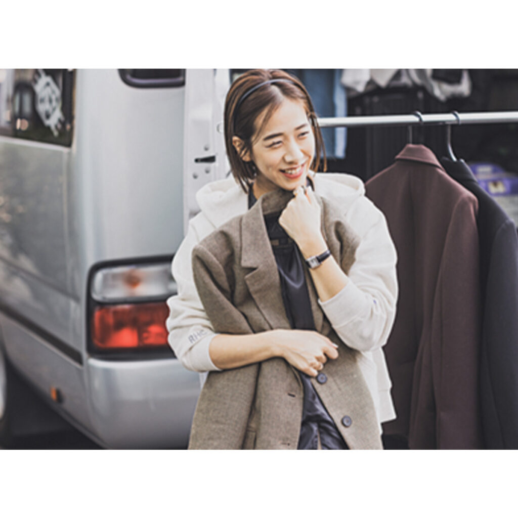 「スタイリングにベストなサイズ感を選べるZARA。ジャケットはあえての大きめが、カーディガンやフーディを中に着込んだ“重ねるオシャレ”に重宝。普段のサイズの1.2サイズアップがカギ。無造作にまくった袖の3段レイヤードもこなれて見えるコツのひとつ。コンサバすぎず、メンズっぽすぎない、バランス上手なビッグサイズが着こなしの鮮度を上げてくれます。」
