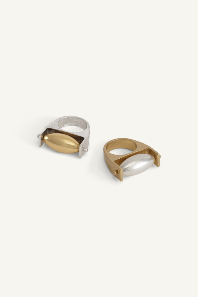 メンズライクなデザインながらも、シルバーとゴールドがミックスされているので華やかな雰囲気に。