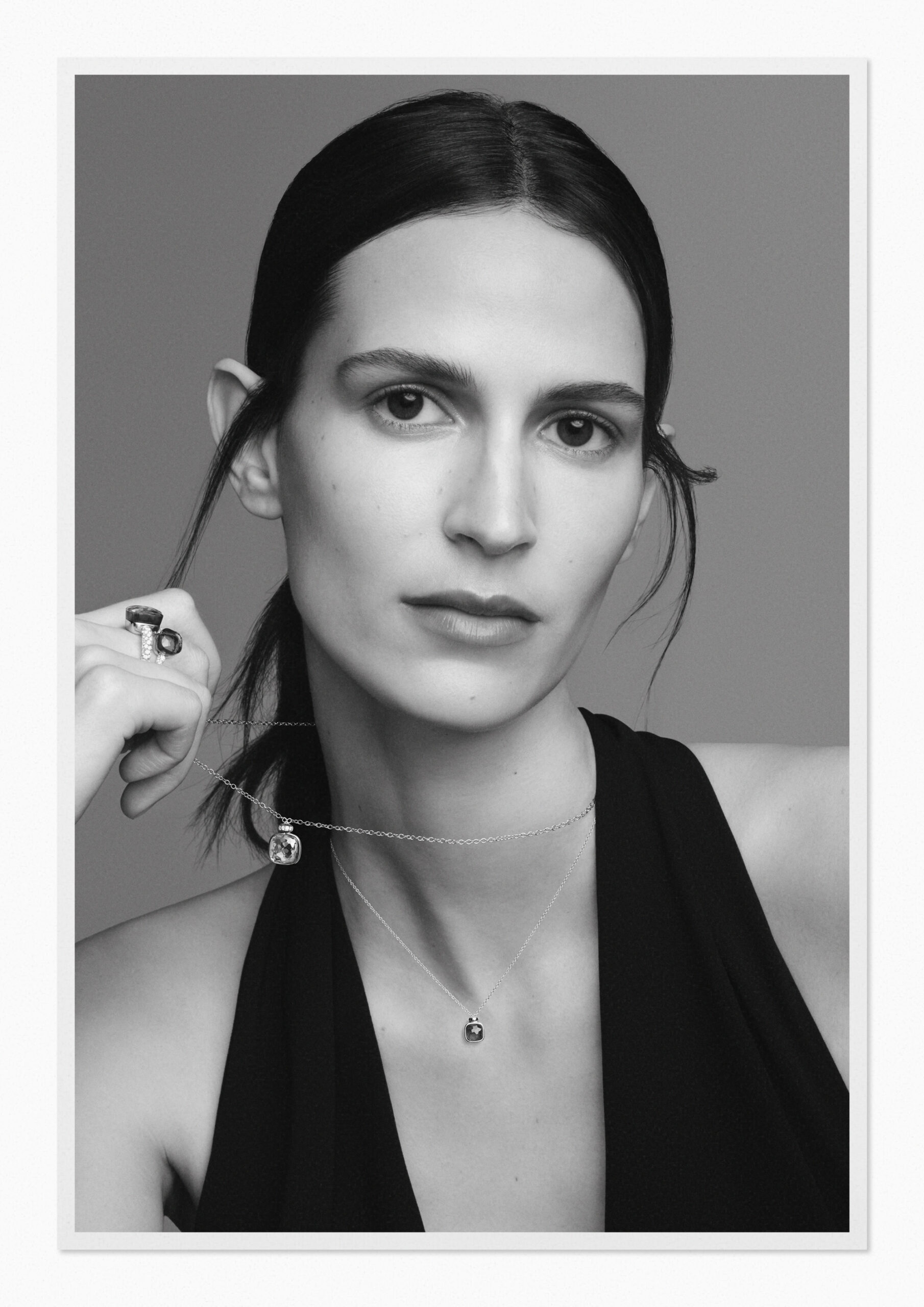 「ヌード ミニ」コレクションは、ブランドならではの特徴的なカッティングをミニサイズで表現しており、コレクションの持つ独自のキャラクターを保ちながら、現代的なデザインをより繊細に解釈したジュエリーです。「ヌー ド ミニ」には、ローズゴールドにダイヤモンドが輝くペンダントやエレガントなバングル、そしてイヤリングがラインナップします。