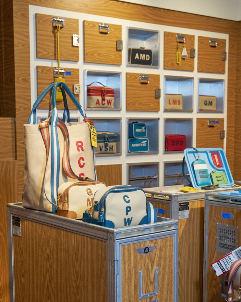 なかには、かつて大西洋を優雅に行き来した英国航空のコンコルドやパンナムのファースト・クラスの乗客用のタグなどのデザインをモチーフにしたものも!エアラインが最も華やかだった70年代を思わせるインテリアで飾られた会場で、旅気分を味わってみて。