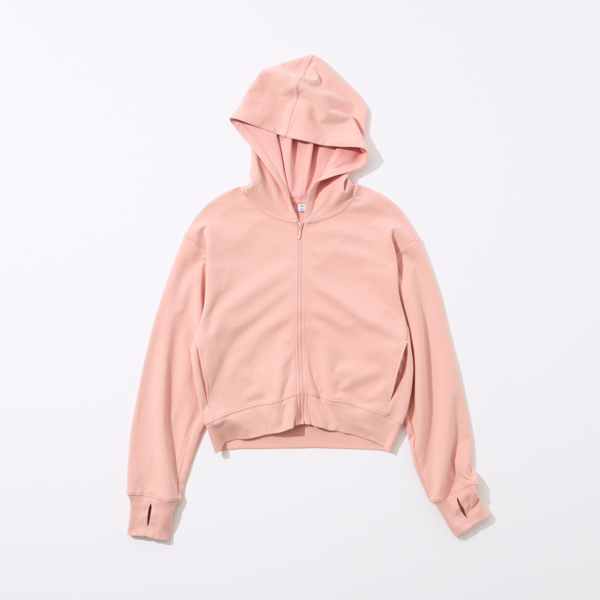 手の甲まで隠せるサムホール付き。夏の羽織りに最適な薄手でさらっとした肌触りです。避暑地へ行った際などにお供として活躍してくれそう。パーカー¥1,990(GU)