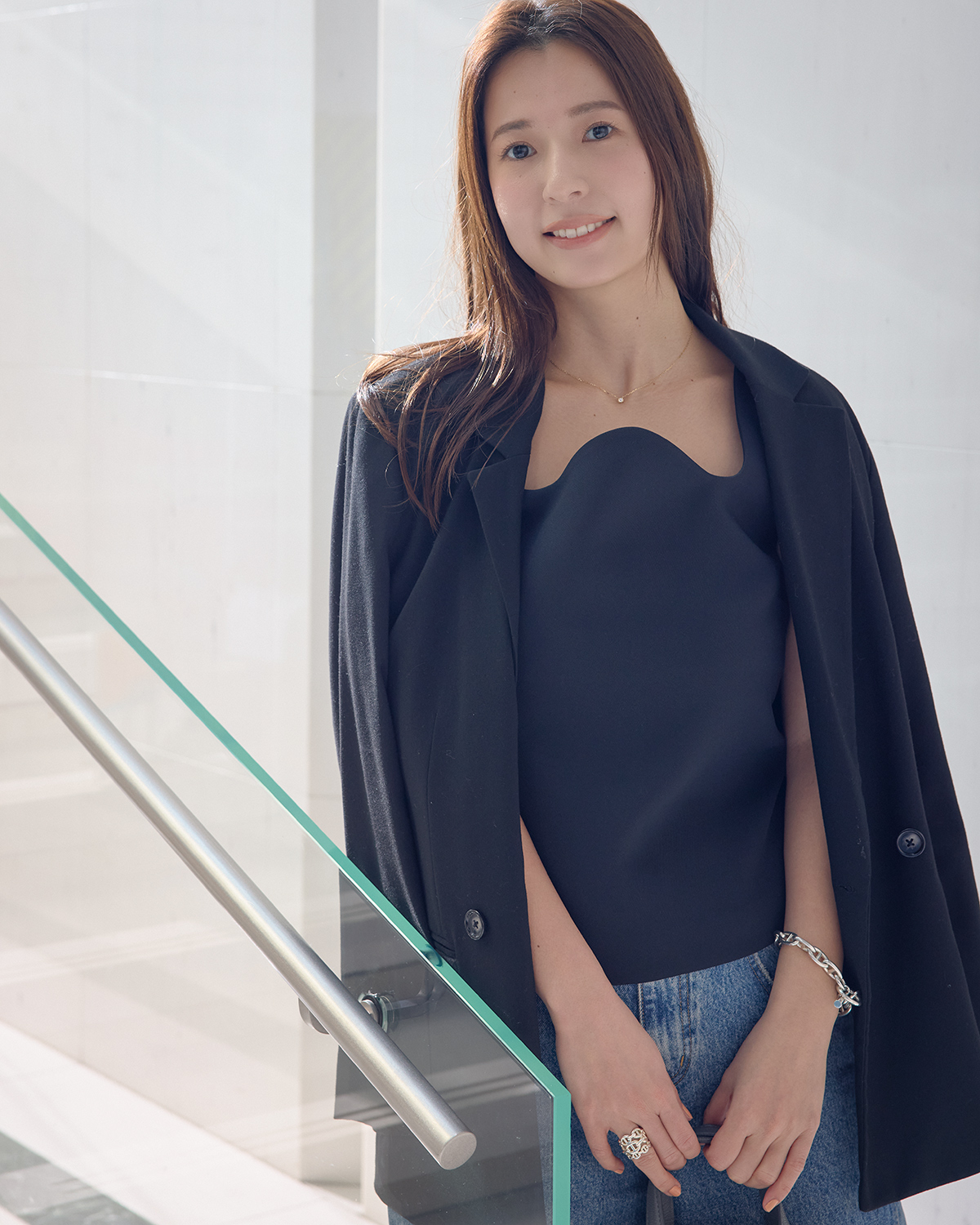 韓国ブランドを合わせた女らしいジャケット×デニムスタイル