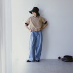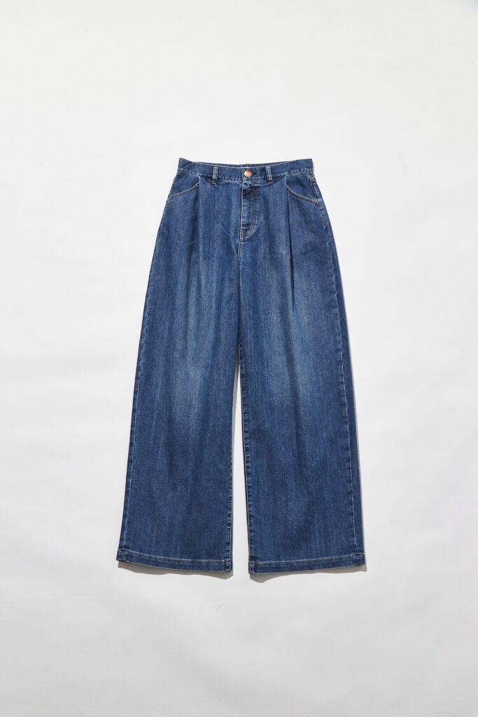 トレンドのタックが効いたデザインデニム。体が程よく泳ぐワイドシルエットは、穿くだけでスタイルアップを叶えてくれると同時に肌離れがよく、涼しく快適な穿き心地。コンパクトなトップスやシャツとの相性が抜群です。