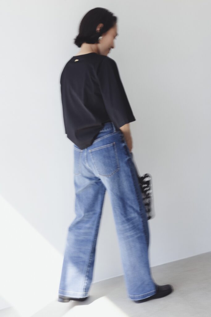 定番の23区DENIMの中でも特に人気のワイドデニムを夏仕様の素材にアップデート。接触冷感のあるストレッチデニム素材を採用しました。ストレートワイドのシルエットは様々なトップスと相性がよく、幅広い着こなしを約束します。
