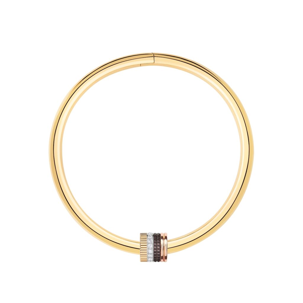 2004年に誕生し、今やメゾンを象徴するアイコンコレクションへと進化した「キャトル」。ブシュロンに継承される4つの象徴的なコードであるグログラン、ダブルゴドロン、クル ド パリ、ダイヤモンド ラインの象徴的なデザインコードが重なり合い、互いの個性を引き立て、唯一無二のデザインを作り出しています。