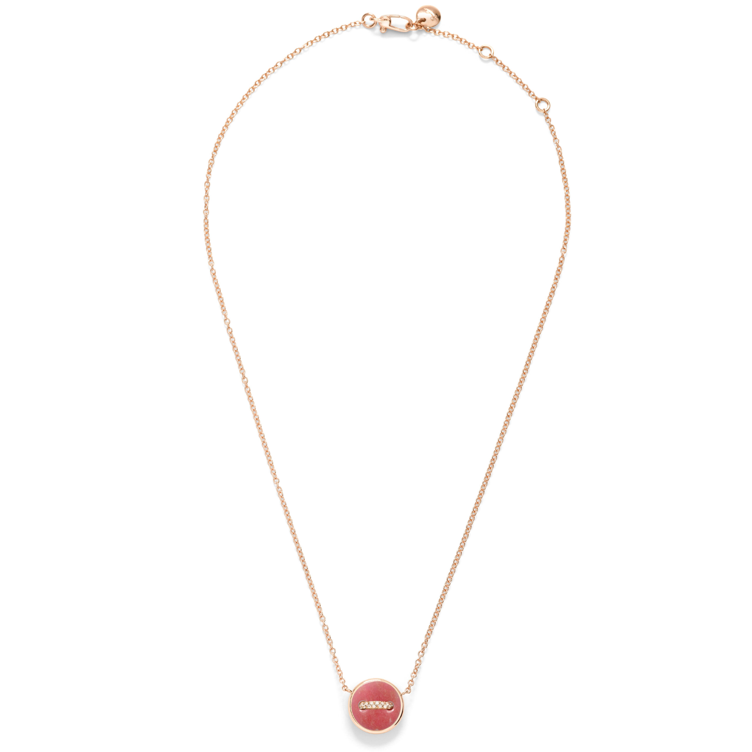 ポメラートのアーカイブにあるボタンモチーフをインスピレーションの源としている「ポムポムドット」コレクション。今回の新作「ポムポムドット」ネックレスは、繊細なピンクカラーのチューライトと、反対側には光沢のあるホワイトマザーオブパールがあしらわれたペンダントトップが特徴です。ローズゴールドにセッティングされ、ホワイトダイヤモンドが輝くこの作品は、ポメラートの職人技術と革新的なデザインアプローチを体現しています。