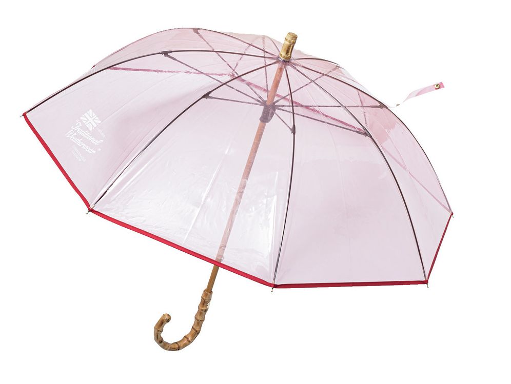 丸みのあるフォルムとバンブーハンドルが上品。ビニール傘ならピンクだって照れずに持てます。傘はトラディショナル ウェザーウェアのもの。