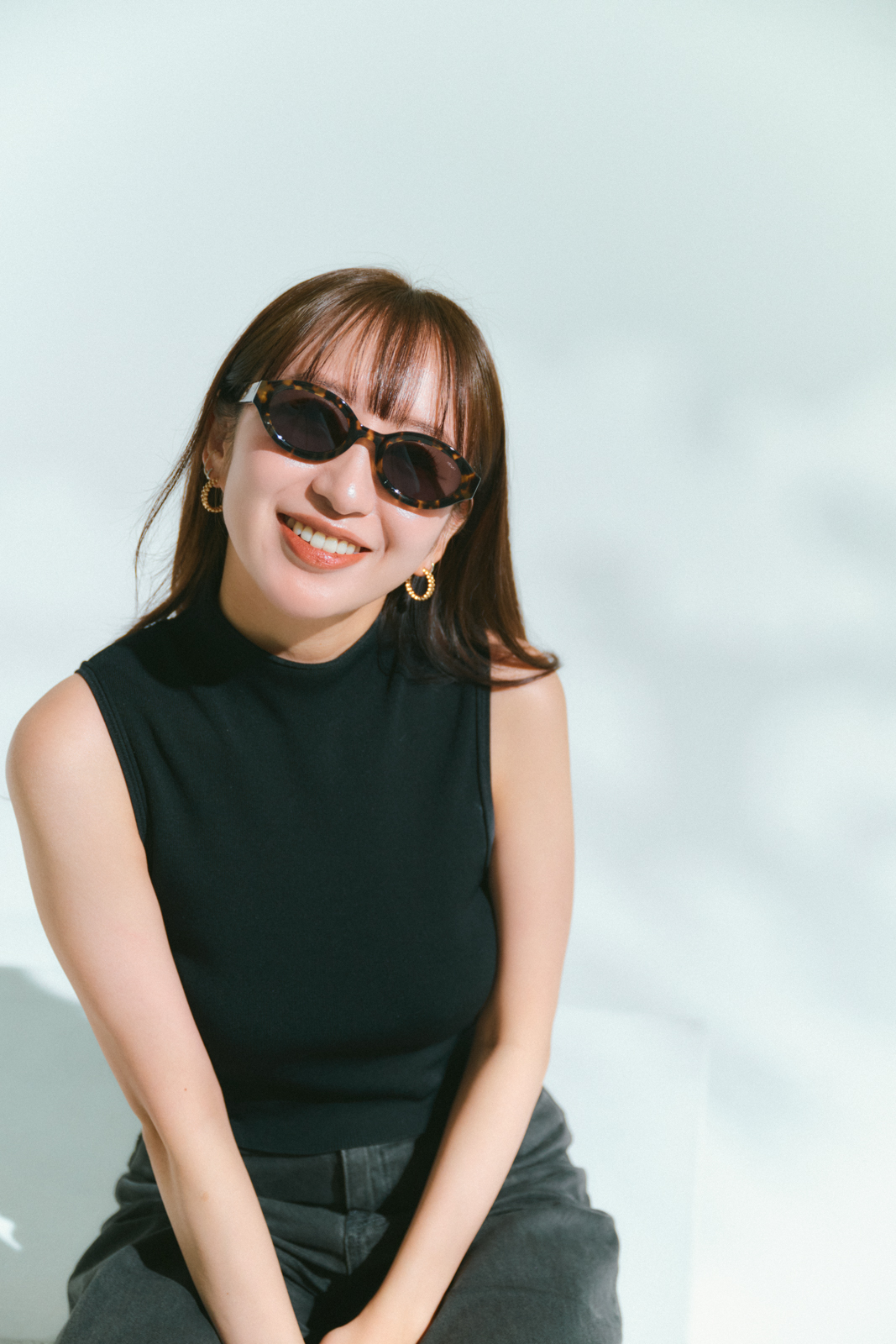 「今年の5月ごろに購入したゾフ×ユナイテッドアローズのコラボサングラス。華奢な細フレームにベージュレンズでサングラスだからと気負わずつけられるので、キメすぎないラフなスタイリングで着こなしたいです」