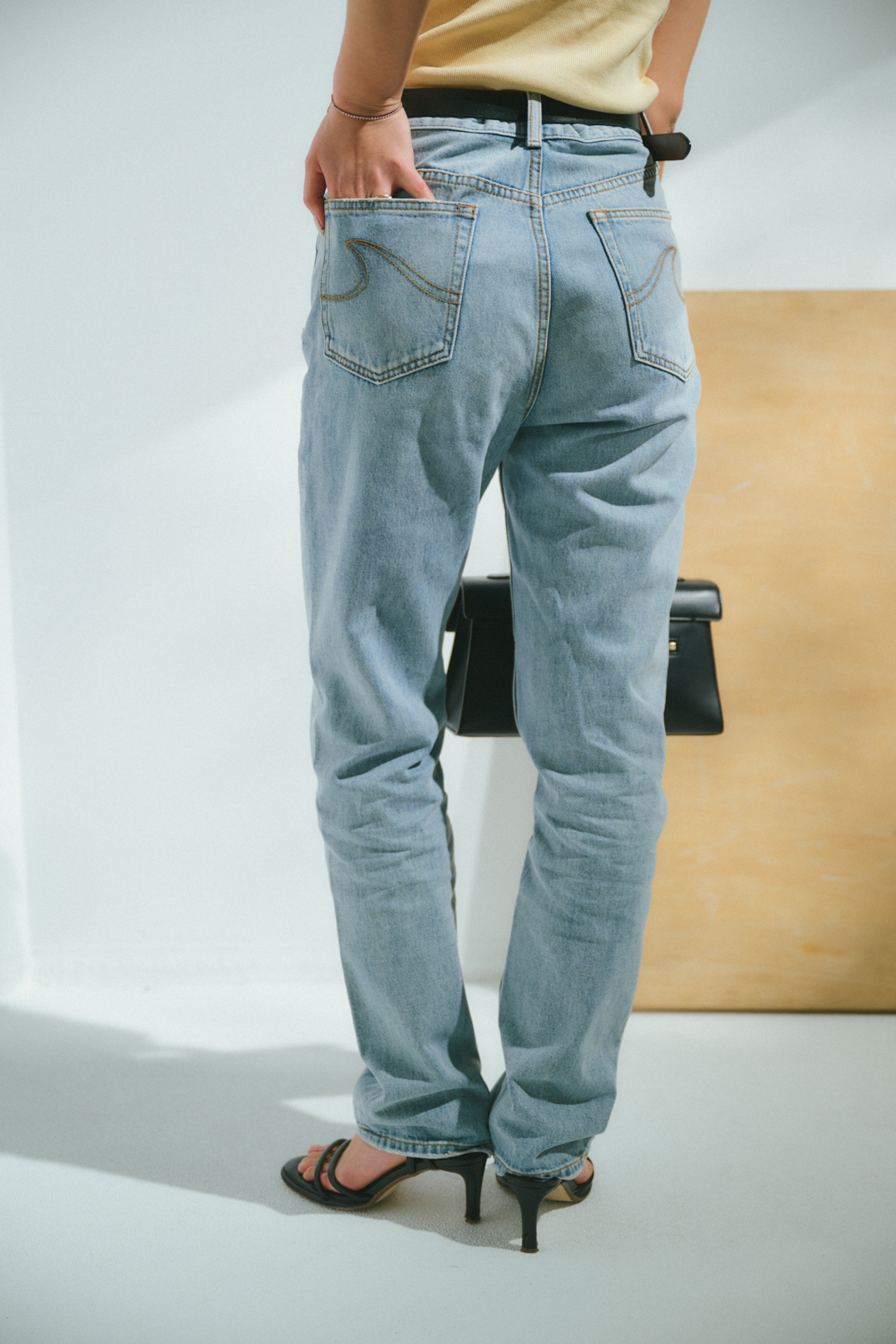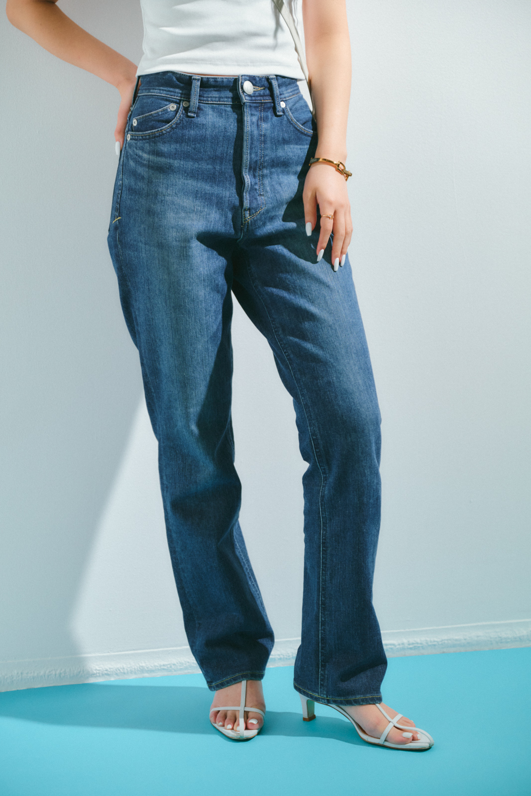 「ヤヌークのストレートデニム『LOUISE』は優秀でオススメ。最高級ラインのプレミアムシリーズだから履き心地も抜群です。美脚見えする長めの丈感もポイントで、シンプルだからこそ何にでも合う万能デニムです」