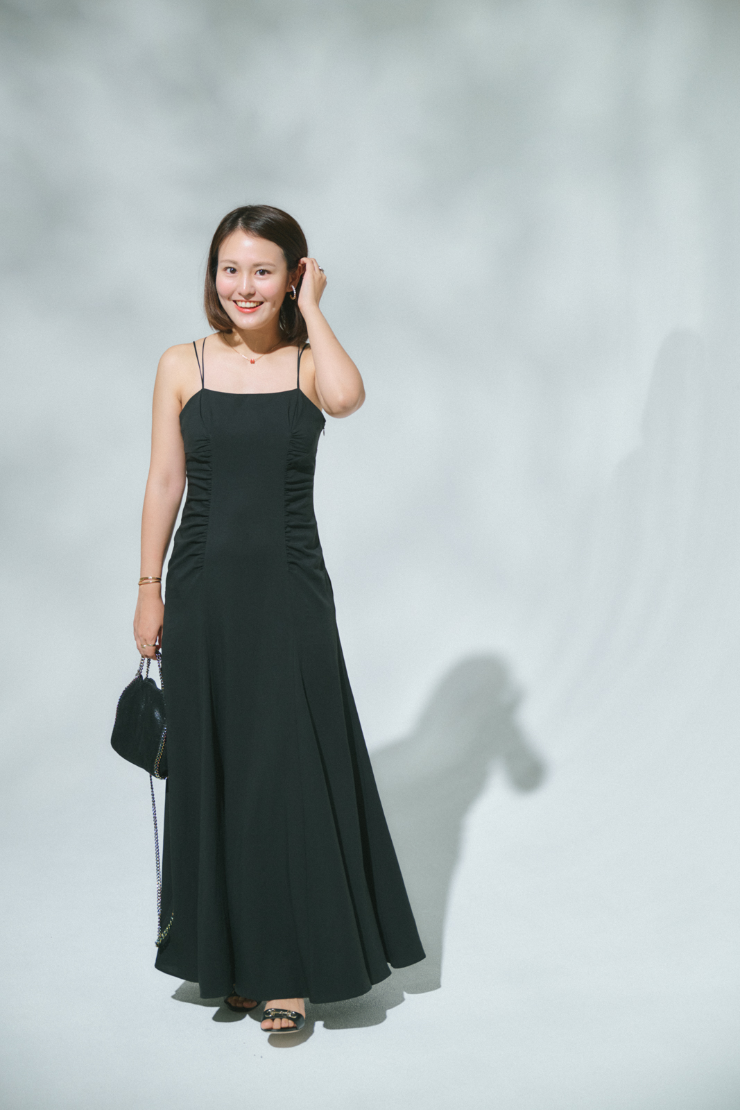 「露出が多い夏ワンピはカップ付きだとインナーを考えなくていいので嬉しい。エステラKの黒ワンピは、取り外し可能なパッド付きで着心地も楽ちんなのに上品さがあって大人っぽく決まります。この夏は軽井沢旅行にも持っていく予定です」