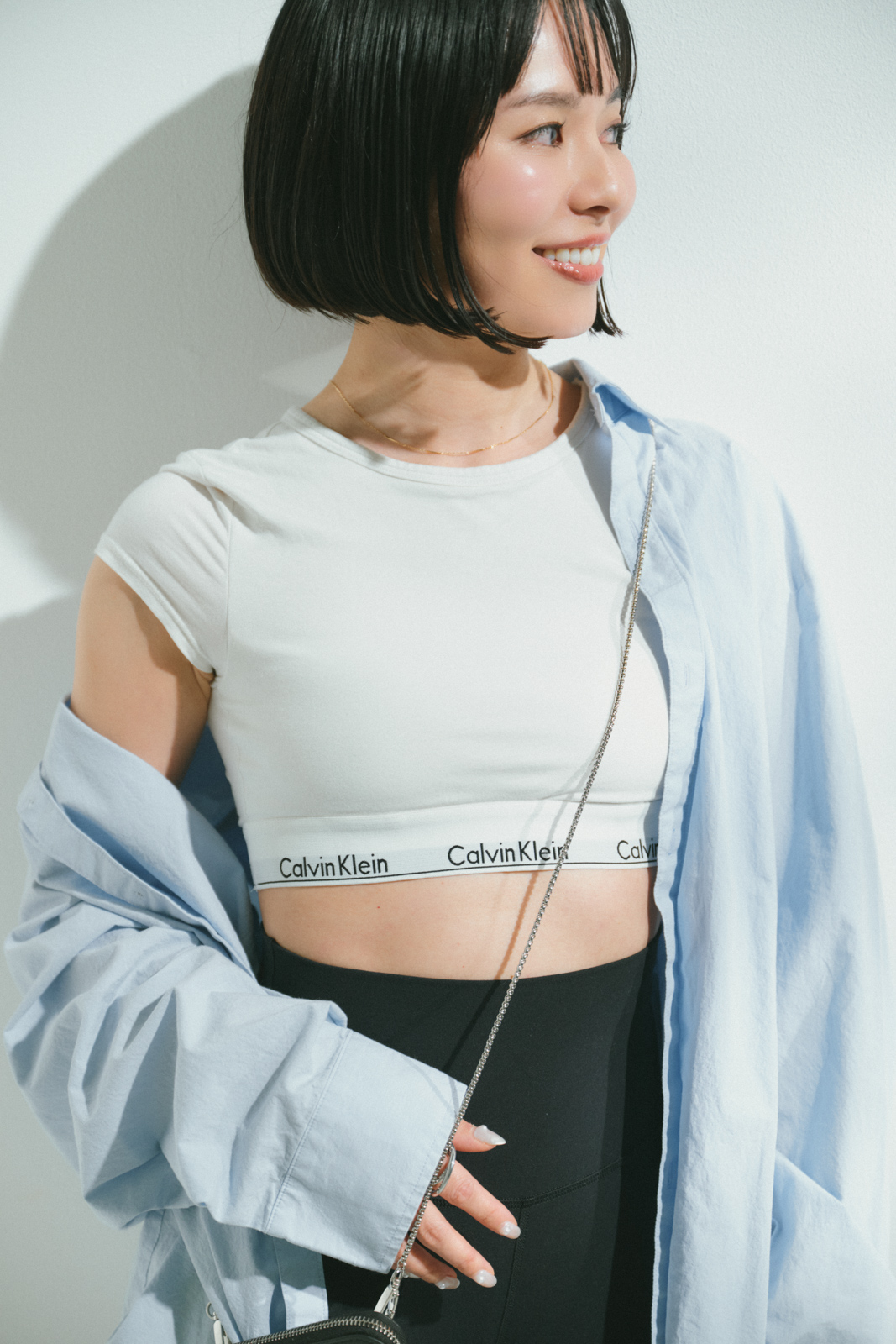 「リブジョアのシャツは絶妙なハリ感があり、さっと羽織ってジム後のランチに行くことも。前ボタンを半分留めてシャツワンピ風に着こなせば、控えめな肌見せで大人っぽくなります。カジュアルすぎず、幅広いシーンで活躍してくれるのが嬉しい」