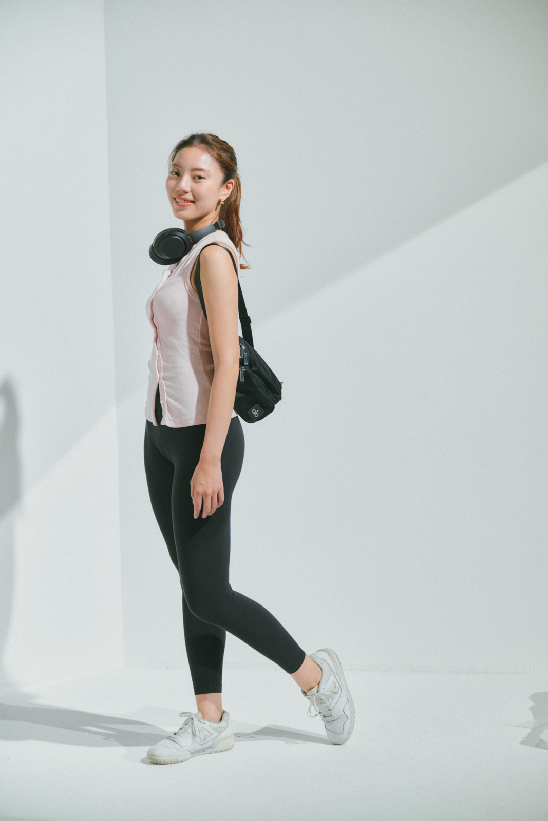 「海外ガールっぽいワークアウトコーデがお気に入り。クーカイのパンツは祖父母がオーストラリアから買ってきてくれたもので、私自身もオーストラリアに住んでいた頃から愛用しています。動きやすさとフィット感が抜群で、シルエットもきれいに見えるのが魅力です。」