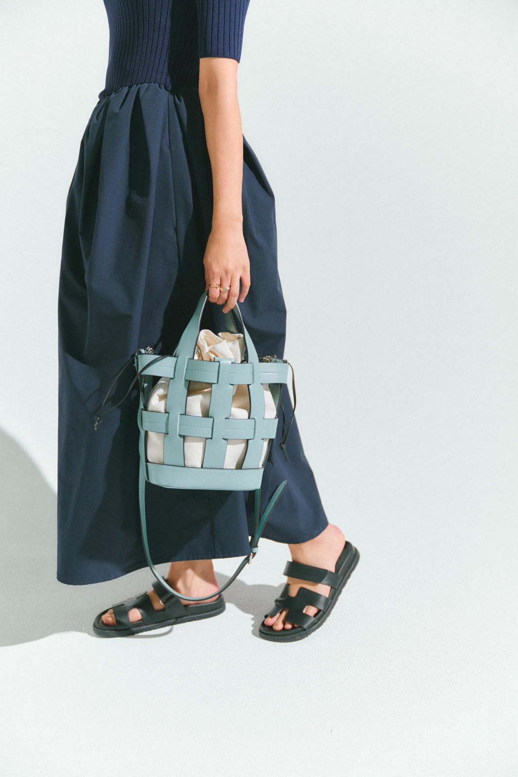 「春にゲットしたバスケットバッグは、見た目以上に収納力があってペットボトルも入るのでこの夏大活躍。バッグの立体感と色味がアクセントになって、ワンツーになりがちなワンピスタイルにメリハリを出してくれます」