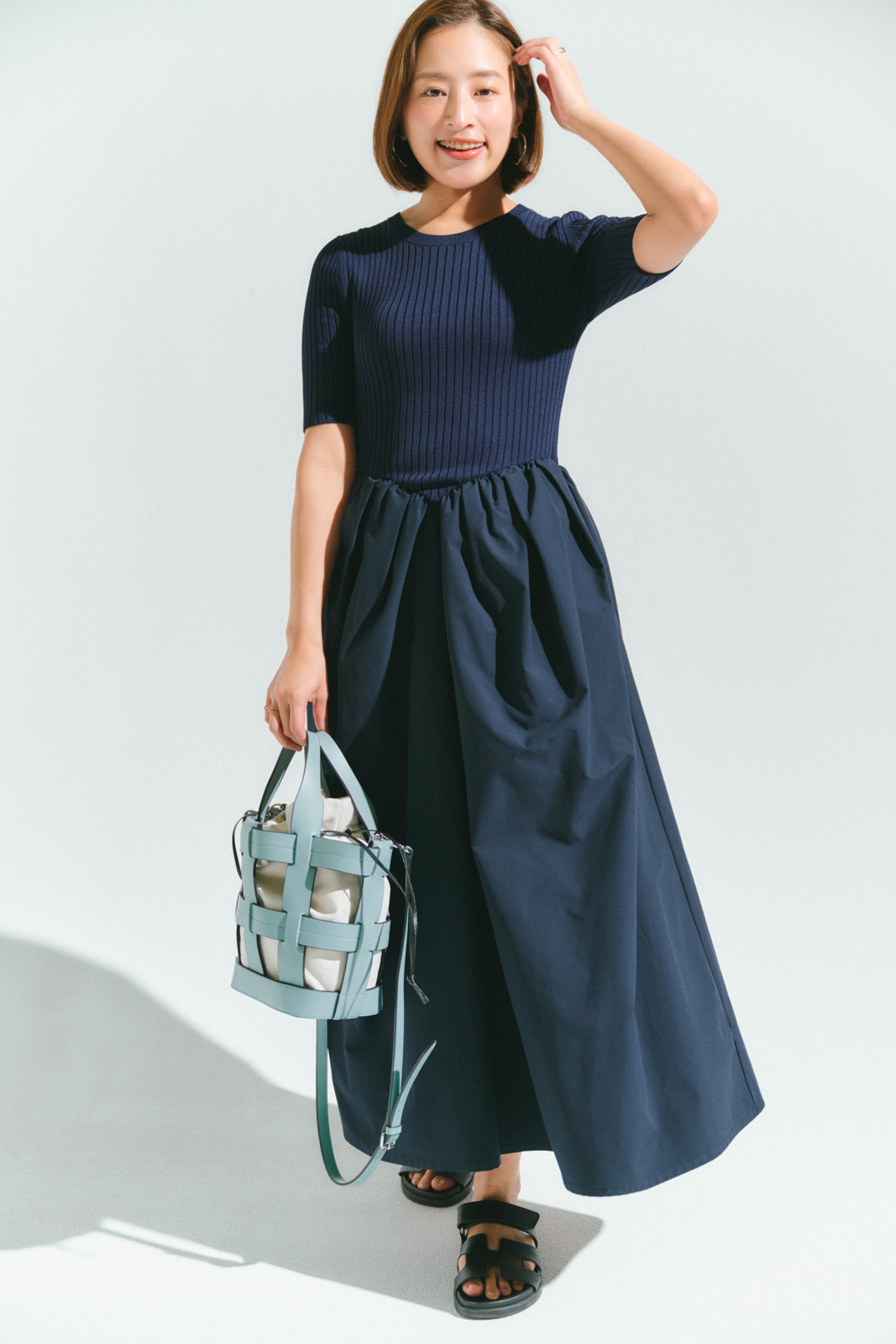 濃淡ブルーでつくる、夏ならではの爽やかワンピスタイル