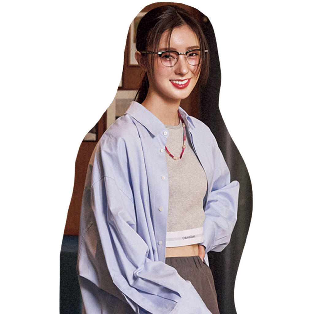 シャツ¥26,400(HER.)Tシャツ¥11,000(カルバン・クライン╱カルバン・クライン カスタマーサービス)スカート¥18,700(アンクレイヴ╱オンワード樫山)バッグ¥20,900(MARROW╱ノーブル 有楽町マルイ店)靴¥15,400(ル タロン グリーズ╱ル タロン グリーズ ルミネ新宿店)メガネ¥59,400(アイヴァン╱アイヴァン 東京ギャラリー)イヤカフ¥4,950(ラ・スール)ネックレス¥31,900〈レポネサジェネラルストア〉(サロン アダム エ ロペ╱ジュンカスタマーセンター)