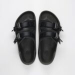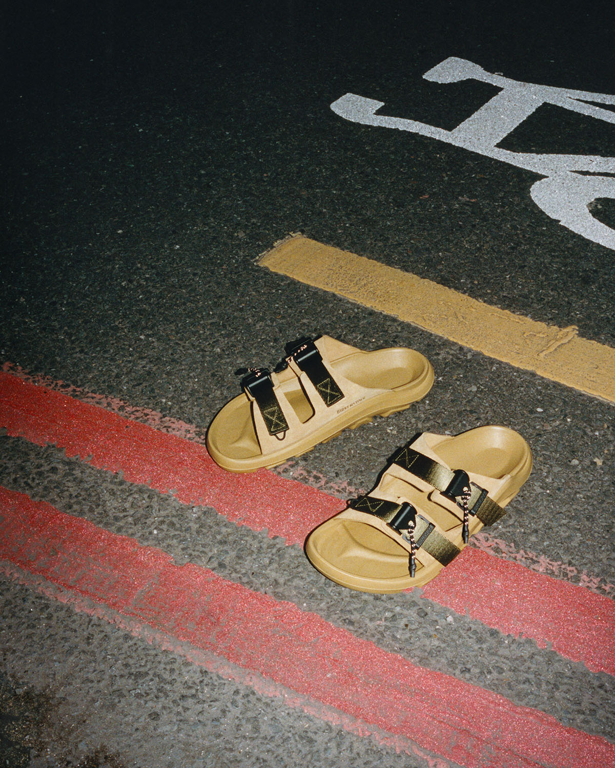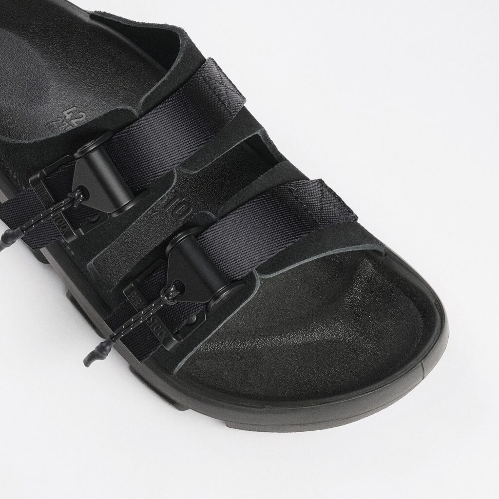 2本のストラップにはスエードとナイロンウェビングを採用。央には高機能なクイックリリースバックルを配置し、下部のソールにはポリウレタンを用いグリップと保護力を備え、解剖学に基づいたBIRKENSTOCKのフットベッドを防水仕様にアップデートしています。