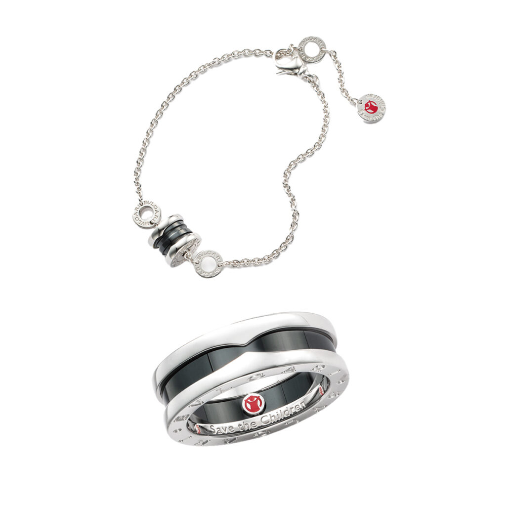 上から「セーブ・ザ・チルドレン」ブレスレット〈SV×ブラックセラミック〉¥97,900(ブルガリ╱ブルガリ・ジャパン)リング〈SV×ブラックセラミック〉¥90,200(ブルガリ╱ブルガリ・ジャパン)