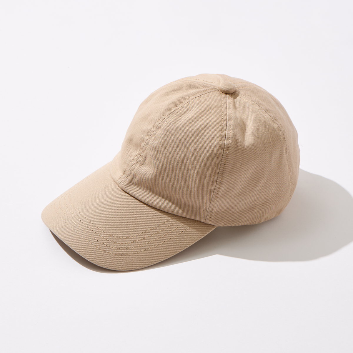 アッパーハイツの6パネルのオーソドックスなキャップ。シンプルなデザインかつ柔らかな色味と素材で、カジュアルやキレイめなどのどんなコーデにも合わせやすい優れものです。帽子¥6,600(アッパーハイツ/ゲストリスト)