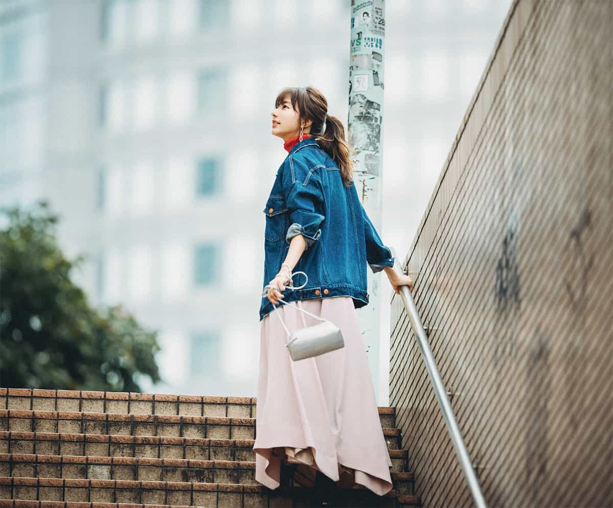 衝撃の告白に女度が高まり、赤・ピンク・デニムのフェミニン配色。「昨日言ったこと本気で考えてね」と追い討ちLINEがきて、決意を固め、中川君のもとへ。正直今は寂しさもあるけど、うまくいく気がする。