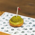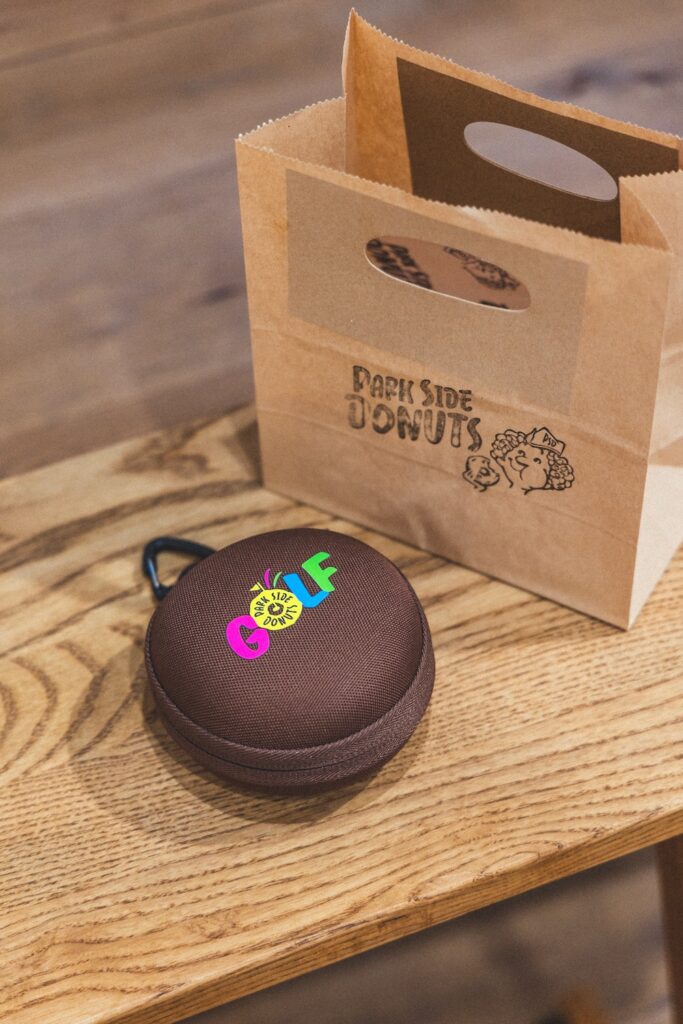 看板メニューの『ボンボローニ』を模したユーモラスなデザイン。ボディの「GOLF」ロゴは、「PARK SIDE DONUTS」のドーナツロゴをアレンジ。ジップ部分のまんまるチャームはドーナツからはみ出すクリームを再現したもの。