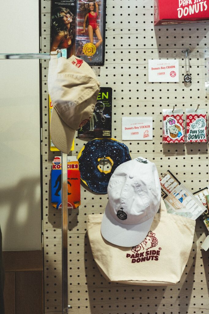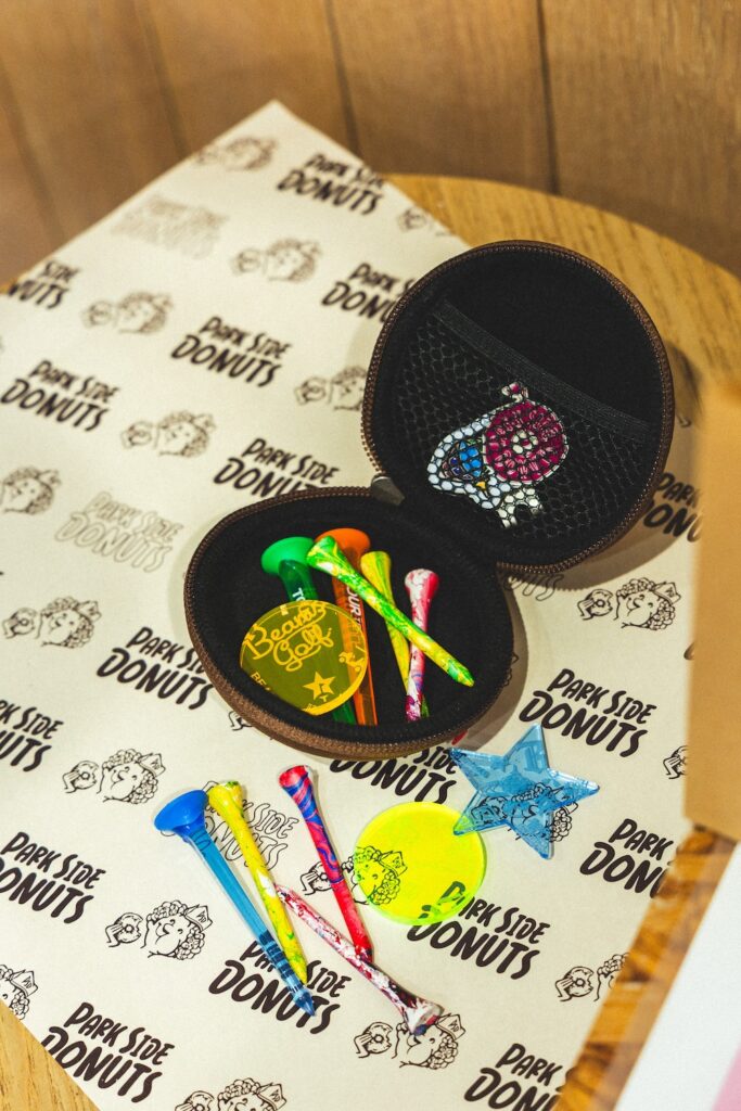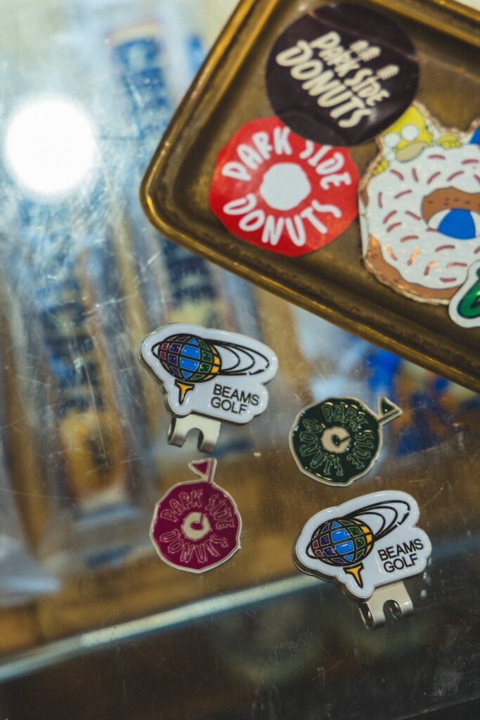 ゴルフのグリーンをドーナツで表現したユニークなロゴデザインや、「PARK STORE」のキャラクターであるドーナツボーイのキャップには「BEAMS GOLF」のロゴを配するなど、細部にまで遊び心溢れたアイテムがラインナップします。