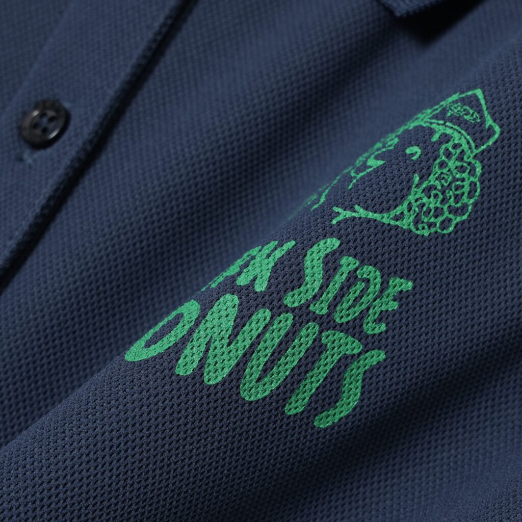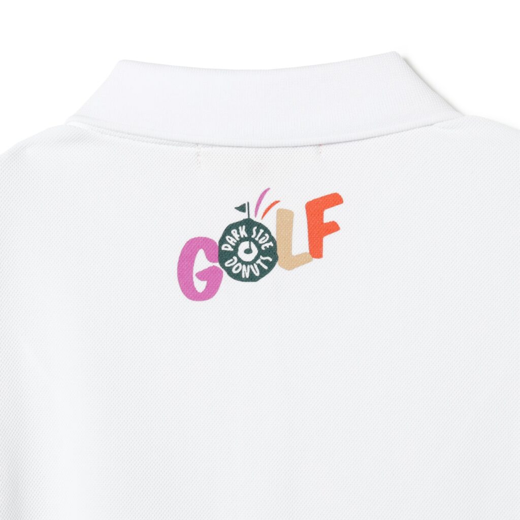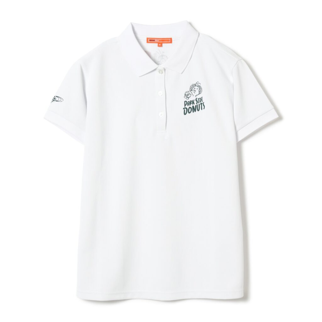 軽量&ドライタッチなスペースマスターカノコ素材を採用したパフォーマンスポロシャツ。フロント左胸には「PARK SIDE DONUTS」のアイコンロゴ、バックスタイルにはドーナツロゴをアレンジしたゴルフロゴをプリント。