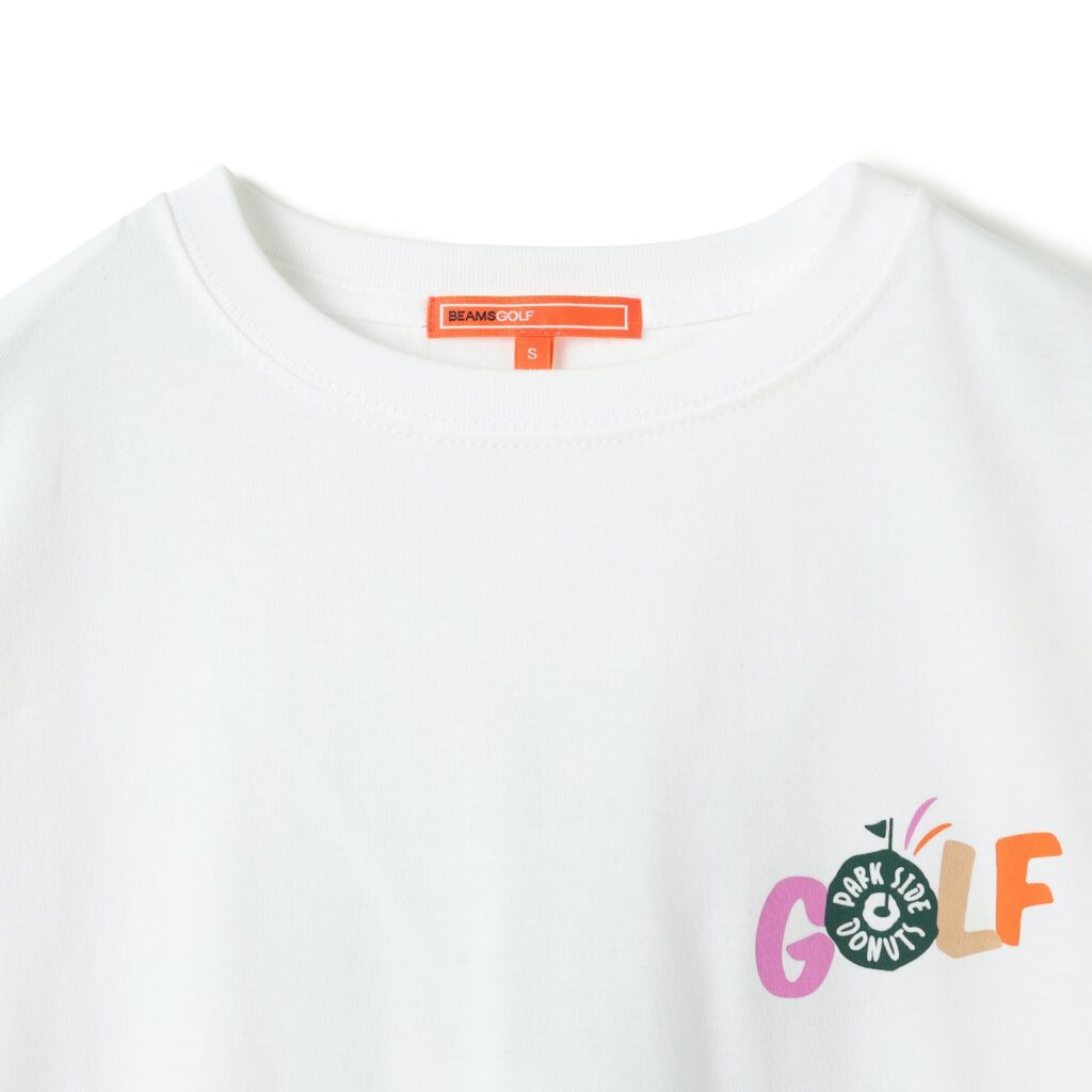 5.6ozのスタンダードウェイト。フロントには「GOLF」フォントにドーナツロゴをアレンジ。バックスタイルには「PARK SIDE DONUTS」のアイコンキャラクターに「BEAMS GOLF」のオフィシャルロゴを配したスペシャルデザイン。