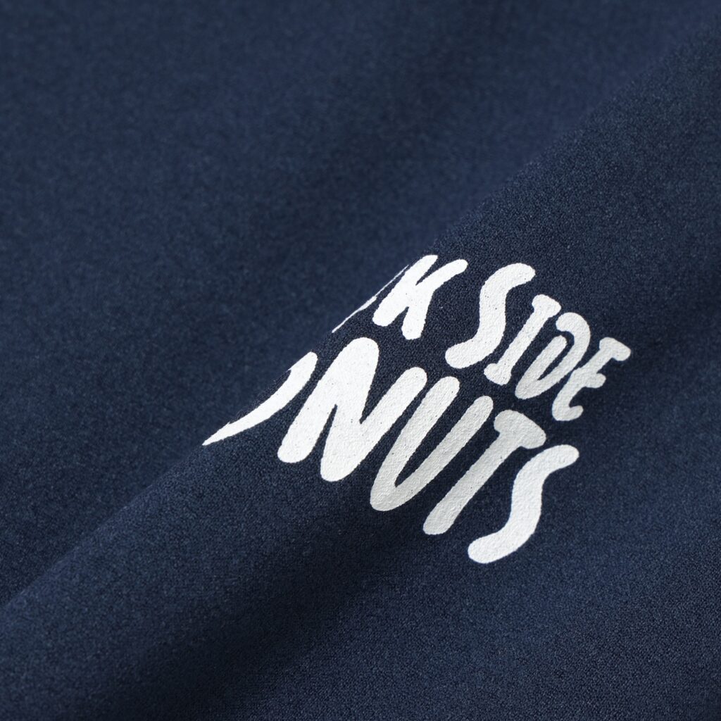 もっちりとした素材をハイストレッチな糸で表現。ドーナツロゴをグリーンに見立て、フラッグを配したスペシャルロゴをプリント。