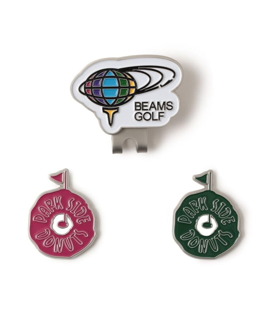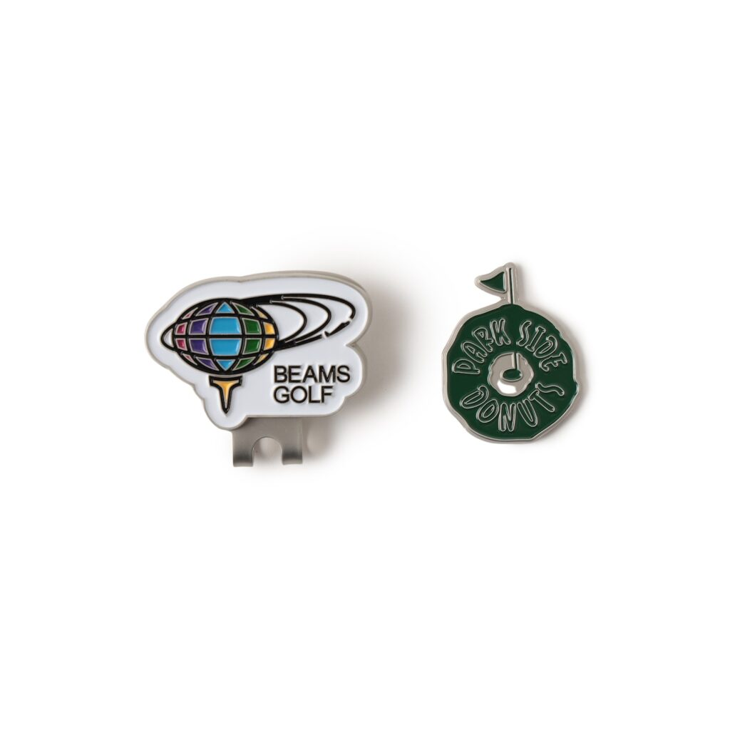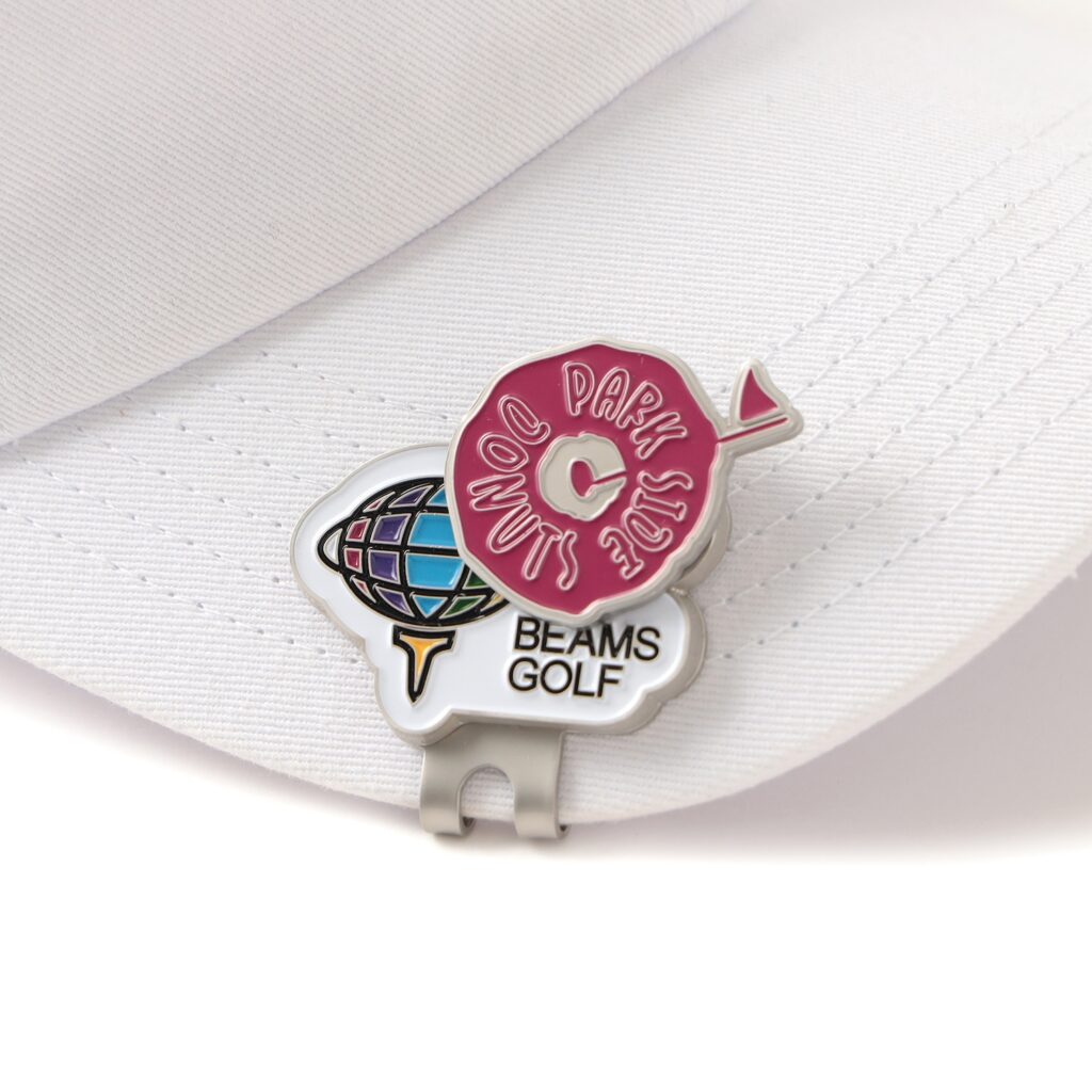 クリップ+マグネットタイプ。マルチカラーにアレンジされた「BEAMS GOLF」ロゴのクリップベースと、スペシャルドーナツロゴが映えるデザイン。