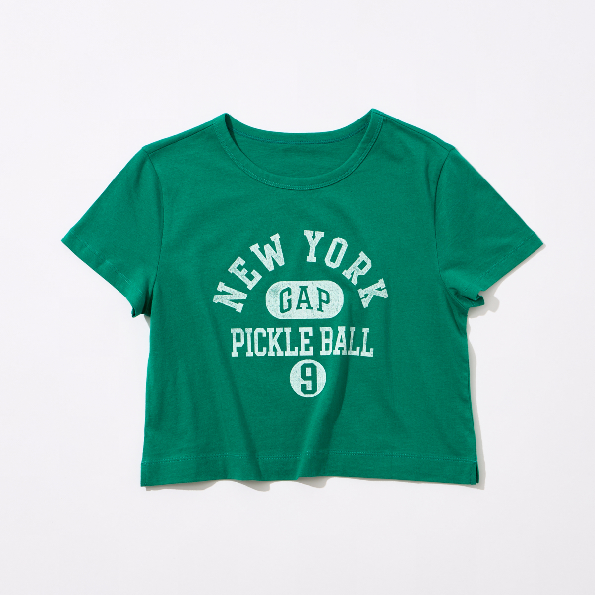 軽量感とソフトな肌触りが特徴的な超ショート丈Tシャツ。ハイウエストのボトムスでもモノによっては少し腹チラするため、ヘルシーな肌見せコーデのアイテムとして活用してみるのはいかが?ロゴTシャツ¥3,490 (Gap)
