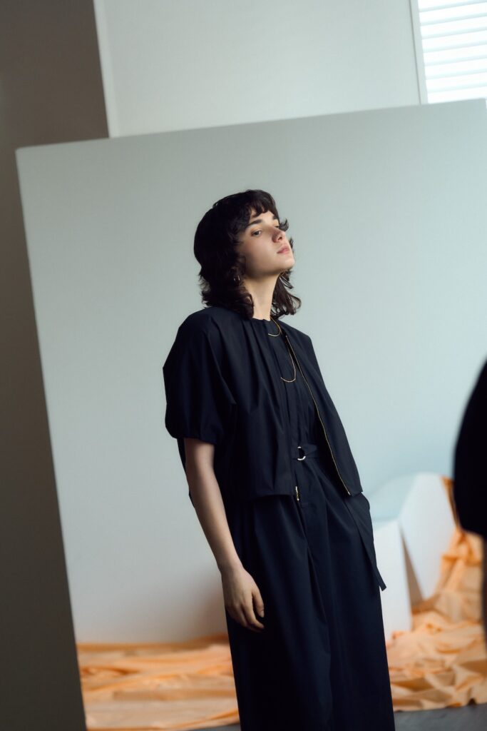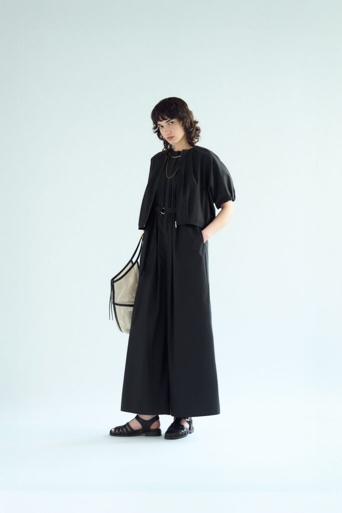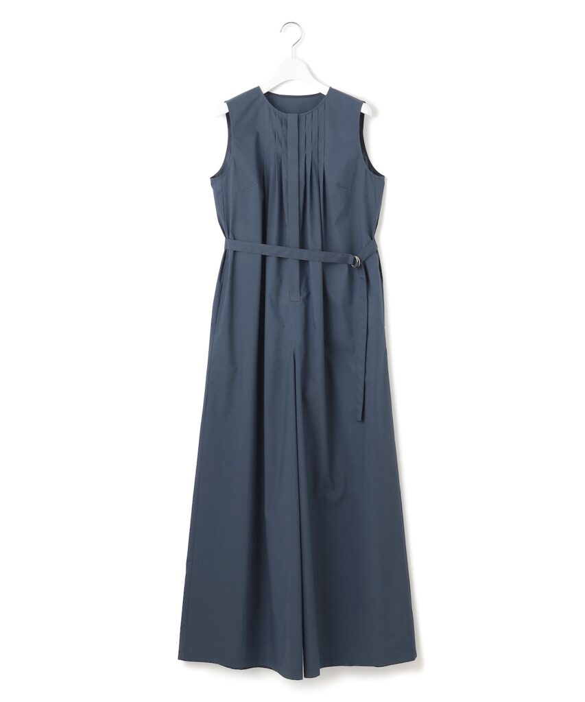 暑い季節にぴったりな、1枚で着映えするノースリーブオールインワン。撥水性と接触冷感性を備えた高機能タイプライター素材で、さらっと快適な着心地を実現。ブルゾンとのセットアップもおすすめ。