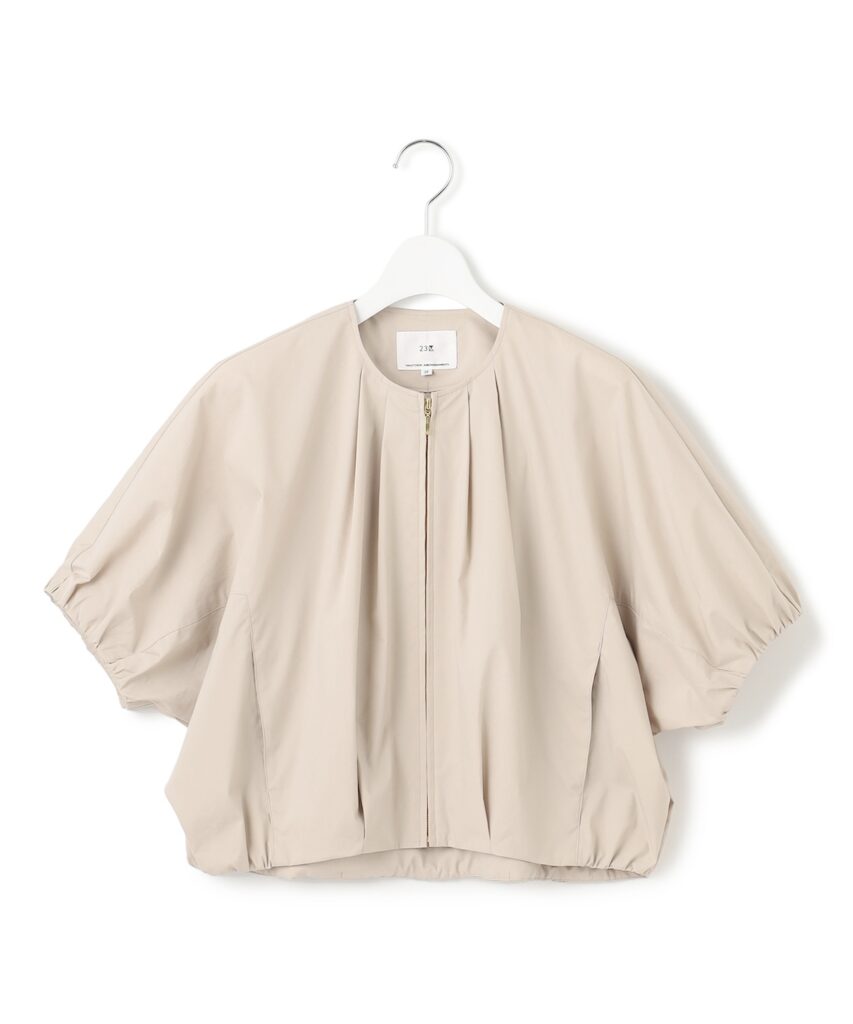 丸みのあるシルエットとコンパクトな丈感で、女性らしさと軽やかさを演出してくれる半袖ブルゾン。タイプライター素材は、上品な光沢と接触冷感・撥水性を備えた高機能素材。自宅で洗えるイージーケア仕様も嬉しいポイント。