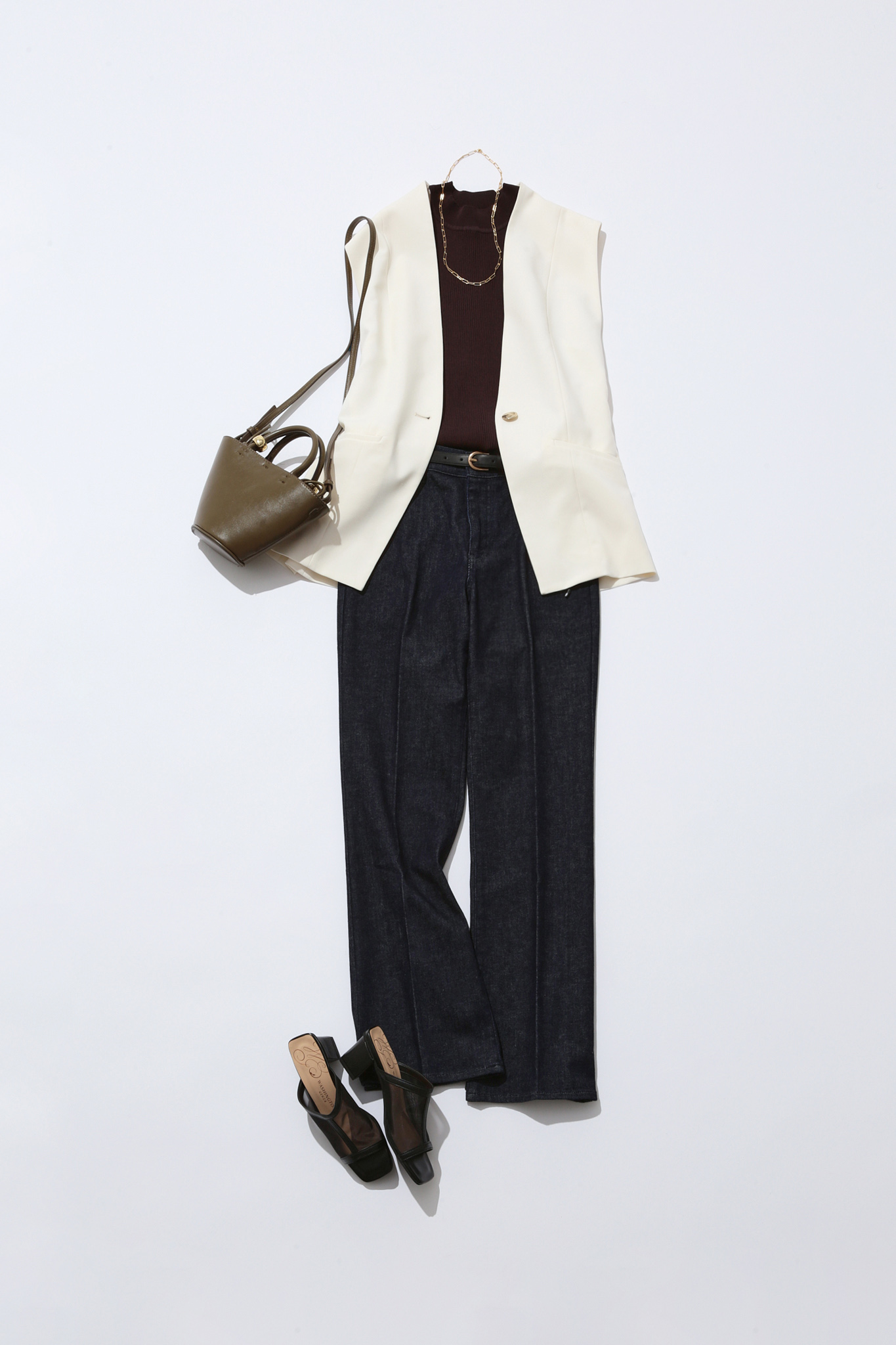 デニム通勤はインディゴでキレイめに!ジレがきちんと感を上乗せ