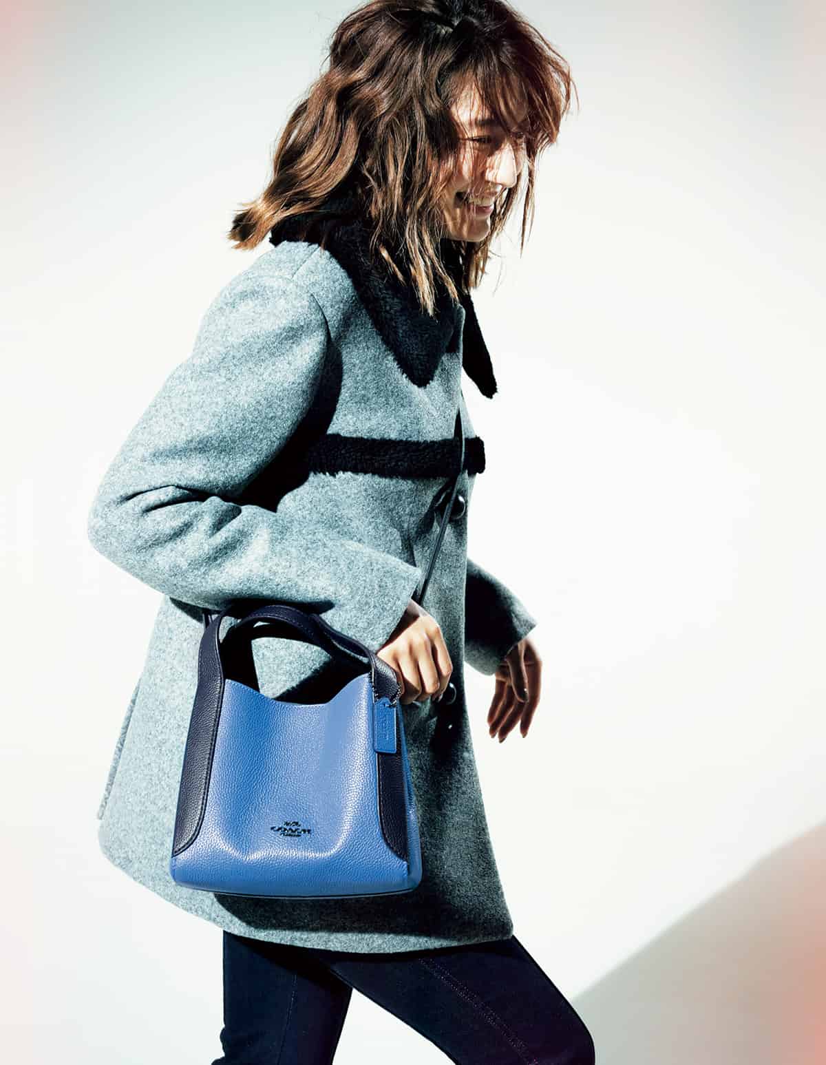 オンにもオフにも使える柔らかなポリッシュドペブルレザーのホーボーバッグ。驚くほどの軽さとキレイ色を楽しめる、シンプルなデザインが魅力。ハンドバッグとしても、ストラップを付ければ軽快なクロスボディとしても楽しめるのがうれしい。 バッグ「カラーブロック レザー Hadley ホーボー 21」〈W21×H17×D12cm〉[ショルダーストラップ取り外し可能]¥55,000コート¥110,000デニムパンツ/参考商品(すべてコーチ/コーチ・カスタマーサービス・ジャパン)