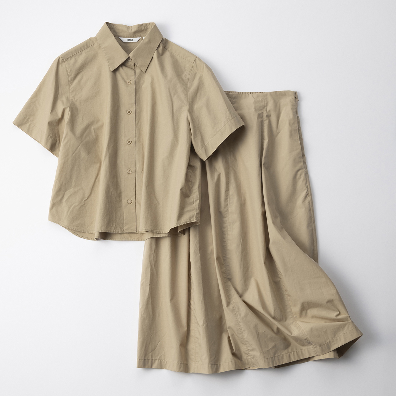 ハリ感と軽やかさのあるコットン素材で快適な着心地のシャツ&スカート