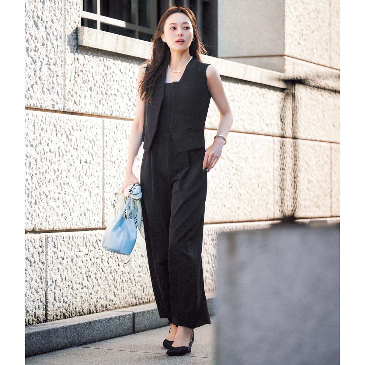 【辛口ブラックが冴える!ジレ×オールインワン】