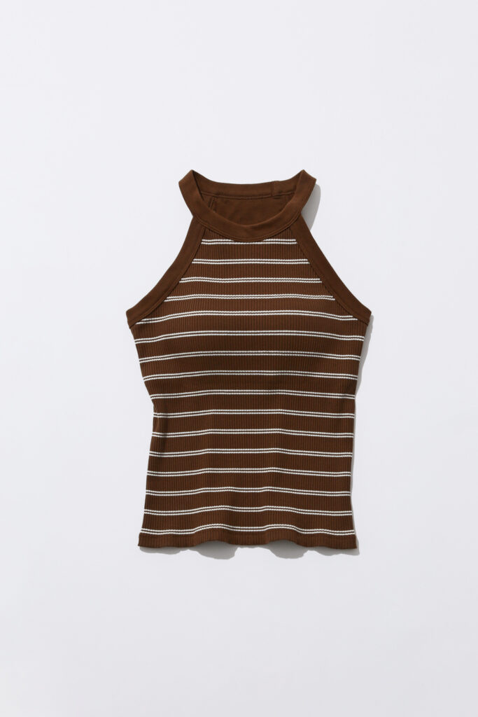肩まわりがラクですっきり見えるホルターネックデザイン。肩からバストトップまでの距離が調整されていて、360°方向からバストを支える構造でキレイに見えるようになっています。¥2,290(UNIQLO)