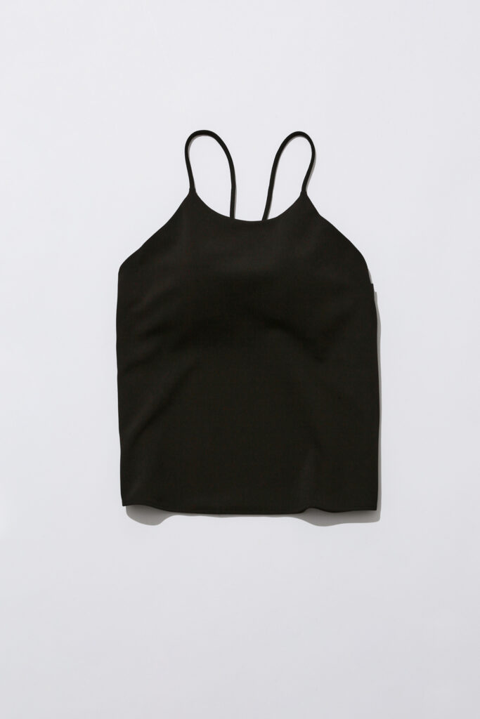 インナーにもレイヤードにも活躍するキャミソールは、王道のブラックとホワイトはマスト!背中のストラップがX字になっているから、背中見せを意識したコーデに挑戦するのもあり。