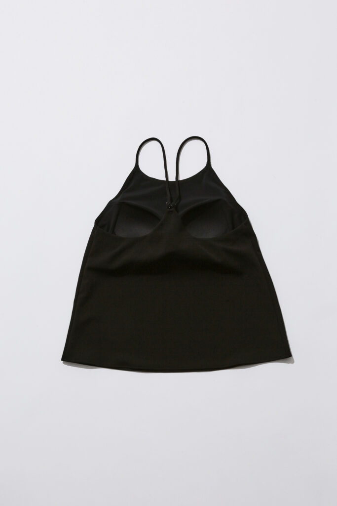 今季もトレンドの「アメスリ」。ユニクロのこちらはホルターネックデザインなので、キャミソールほど胸元の露出感がなく、1枚でもさらっと着れちゃいます。スポーティなムードが、大人のヘルシーさを引き出してくれるアイテムです。