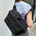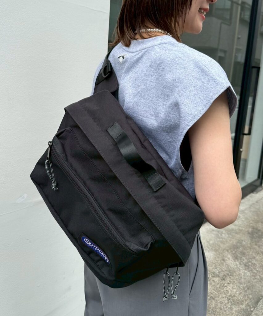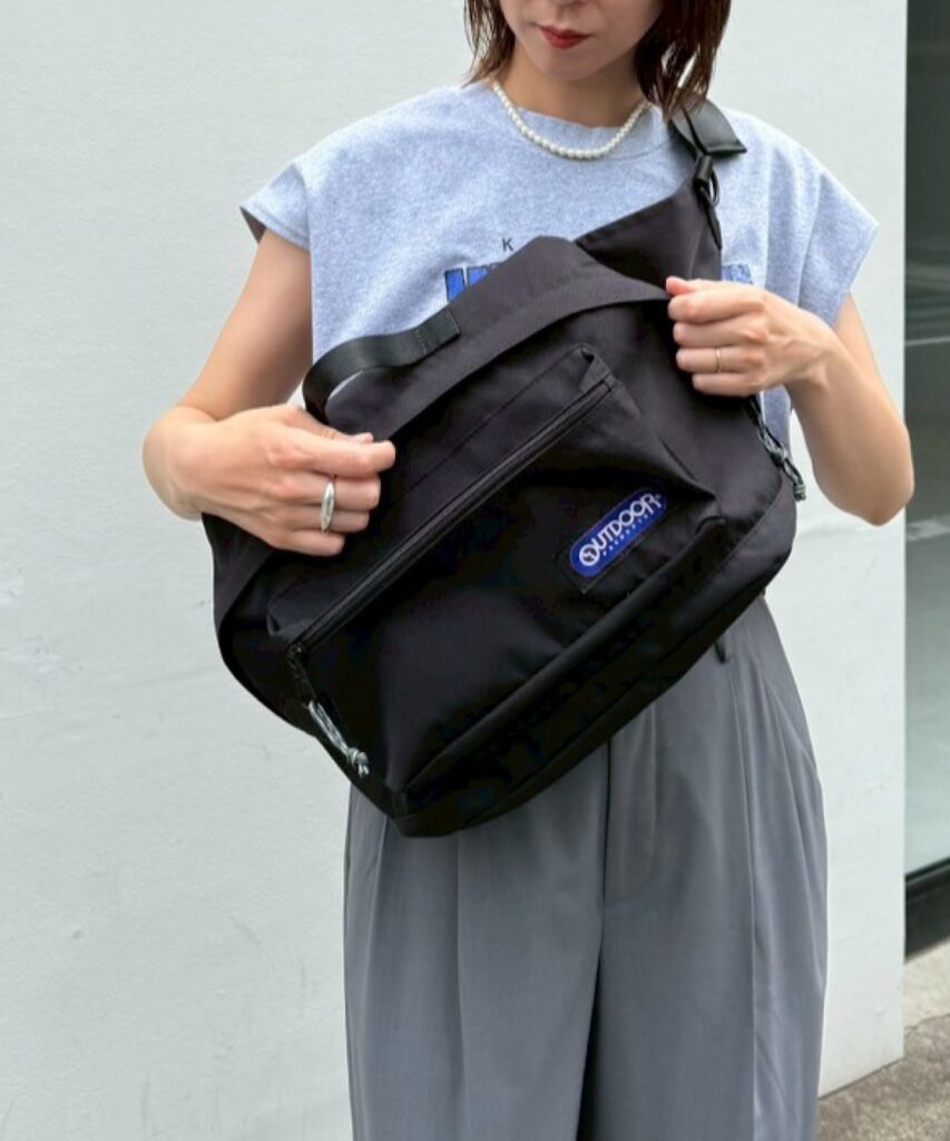 「OUTDOOR PRODUCTS ex LUMBAR PACK」は、フロントポケットのフラップ部分にあるハンドルを2本から1本にしたモダンな仕様。サイズ感はそのままに、PCやipadを収納できるポケットを搭載。さらに3WAYで、アクティブなライフスタイルの方におすすめ。