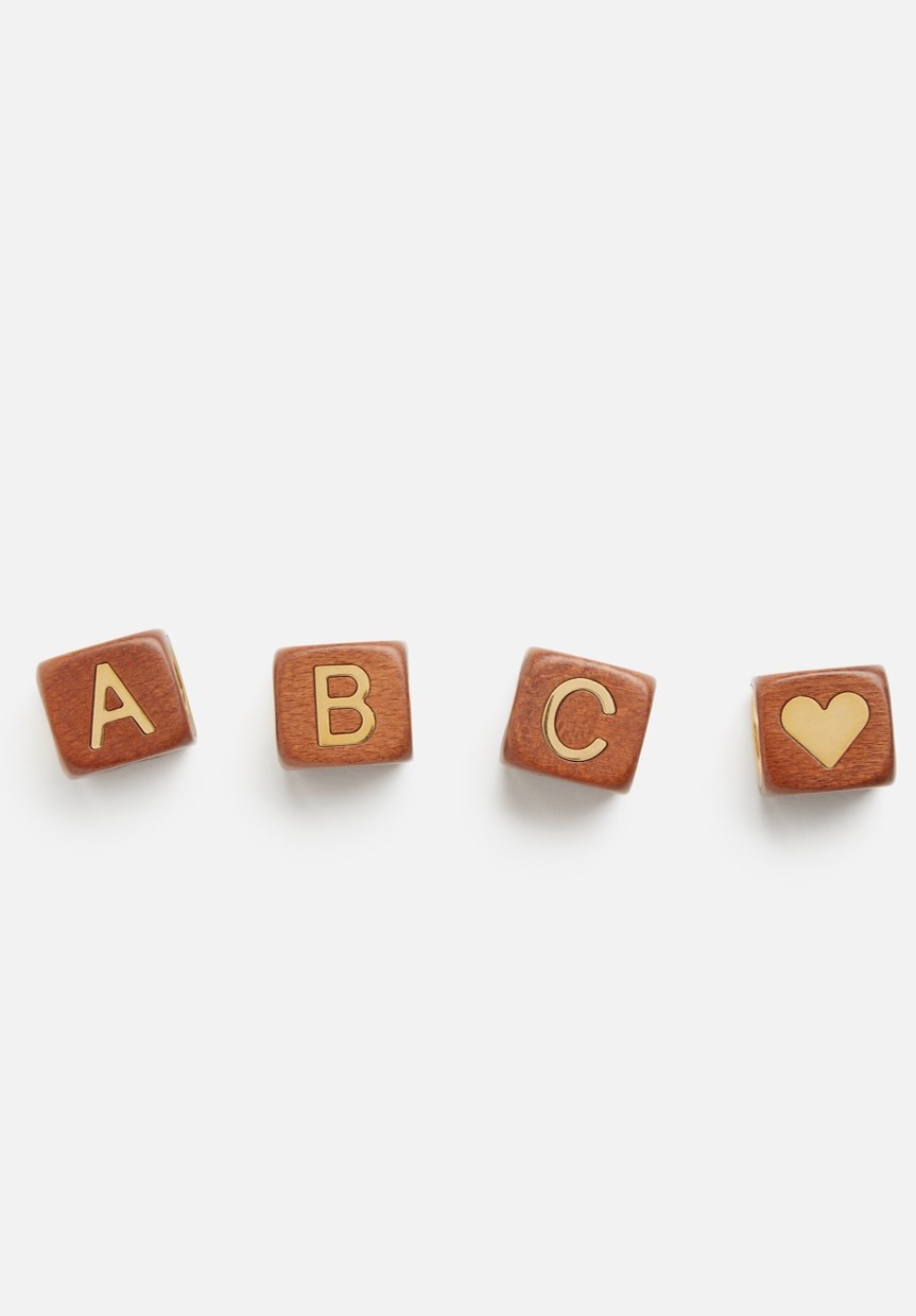 アンディアーモをパーソナライズできる新作「Andiamo Pépites(アンディアーモ ペピット)」。お選びいただけるダイスパーツには、手作業でやすり掛けを施したオークウッドとメタルを使用。各ダイスにはアルファベットやハートモチーフがあしらわれており、自然素材とボッテガ・ヴェネタが誇るクラフツマンシップの融合により、温もりと洗練を併せ持つ独自の存在感を放ちます。