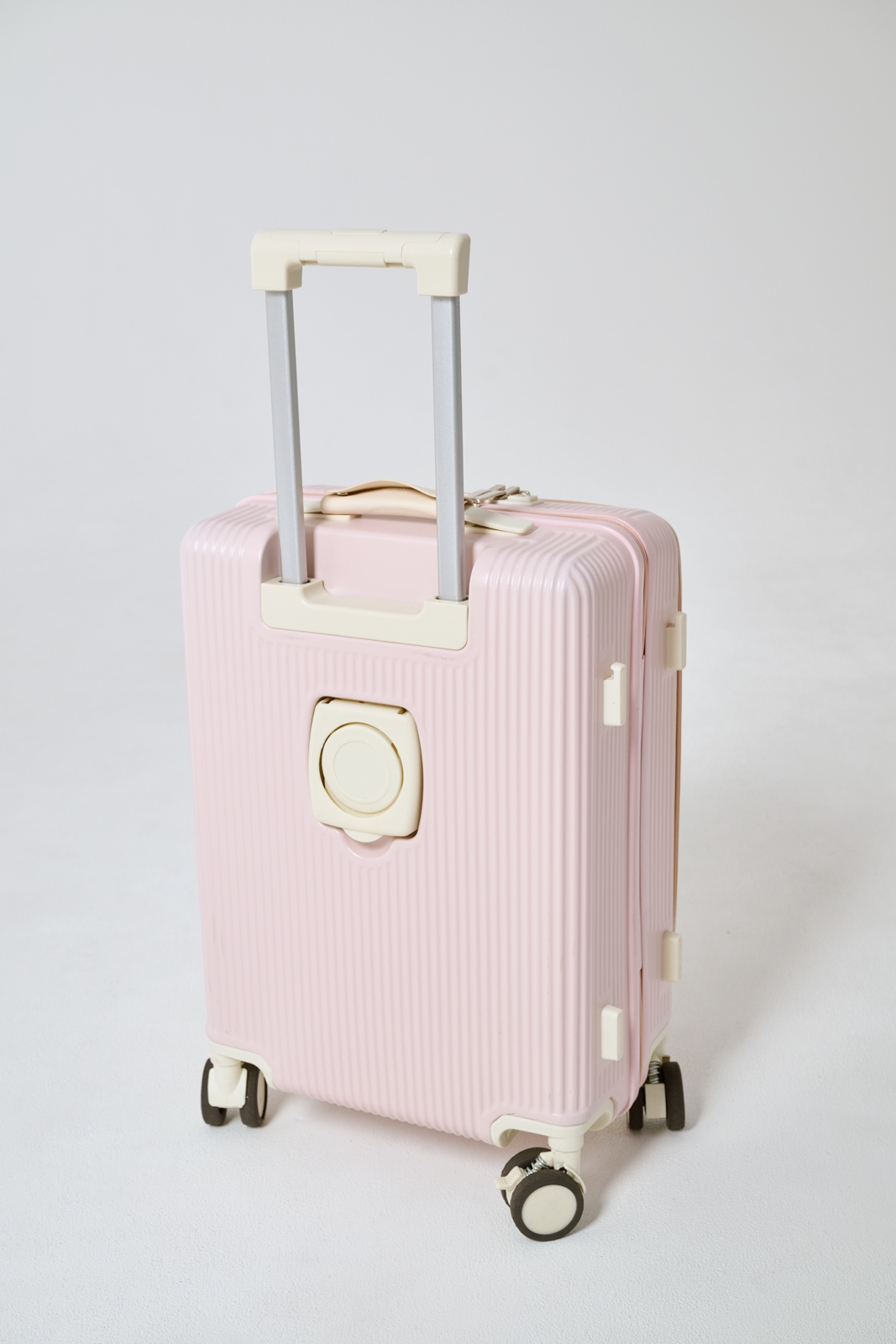 「楽天で購入したノーブランドのキャリーケースは、プチプラなのに優秀でびっくりしました。急ぎで必要だったので、すぐ届くことと機内持ち込み可能なサイズであることを基準に選んだのですが買って大正解!充電ポートやタンブラー置き、スマホ置きなど便利な機能が豊富で使い勝手も抜群。あえて定番色ではなく、空港でも見つけやすいピンクを選びました」