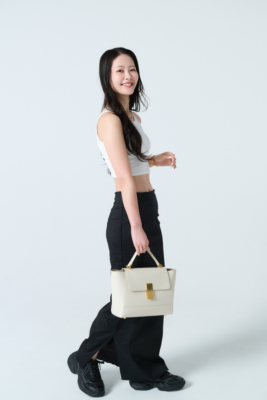 「夏のモノトーンは白を多めにして、軽やかで爽やかな印象になるよう心がけています。プチプラのワンツーコーデでも洒落て見えるよう小物でリッチ感をキープ。ボトムスやサンダルとリンクさせて、ホワイトを入れることで統一感がアップします」