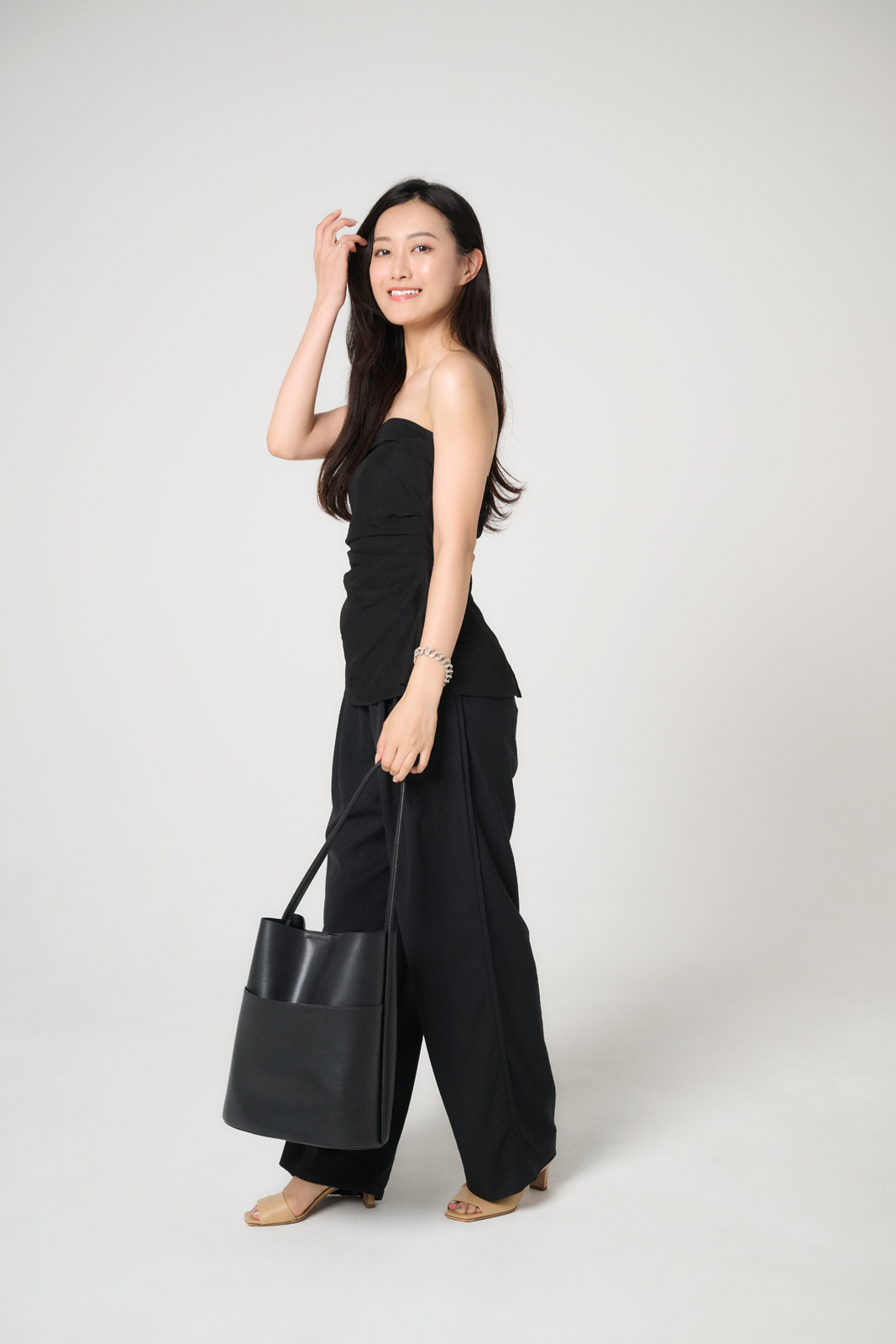 「ヘルシーな肌見せをスタイリッシュにまとめるのがこの夏の気分。ほどよいモード感とシンプルさを意識して、オールブラックでコーデしています」